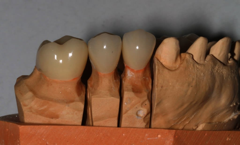 du coup tu retouches les faces palatines du haut pour .se faire plus de place ,et hop tu t'appercois que les prov sont trop fins ,donc tu retailles les dent , donc tu rebase . mais comme on est malin on remonte la dvo avec des compos mais ça ressemble à rien par ce que le wax du haut etait trop en dedans et le temps passe et t'y as envie de pisser que t'y en peu plus ...