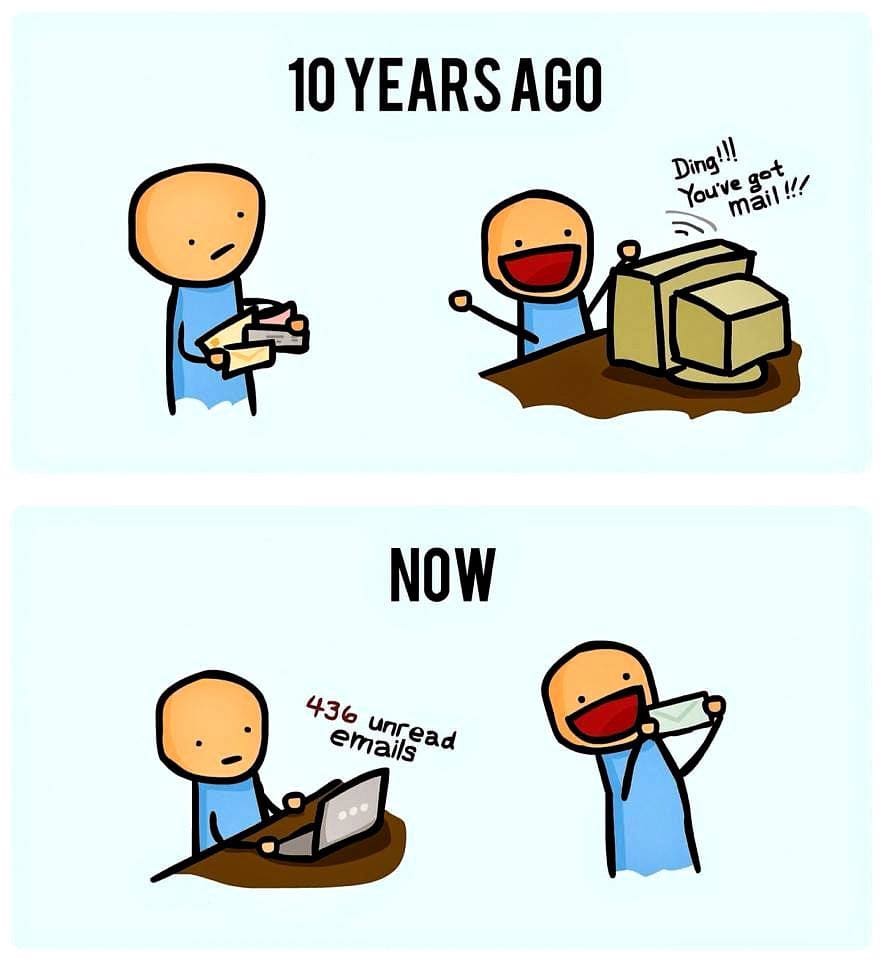 - Il y a 10 ans : ding, vous avez 1 e-mail. Youpiii