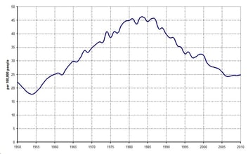Et cela dit quoi: que les suicides diminuent dans le monde. Merde alors. Le mec a tout un discours basé sur l'augmentation et en réalité cela baisse. Je met l'image du taux en GHongrie. Marrant une hausse durant le XX eme siècle avec un pic vers 1980/ 1990 et depuis une baisse, Rhhhoooo et cela colle avec la fin du communisme. Etonnant?