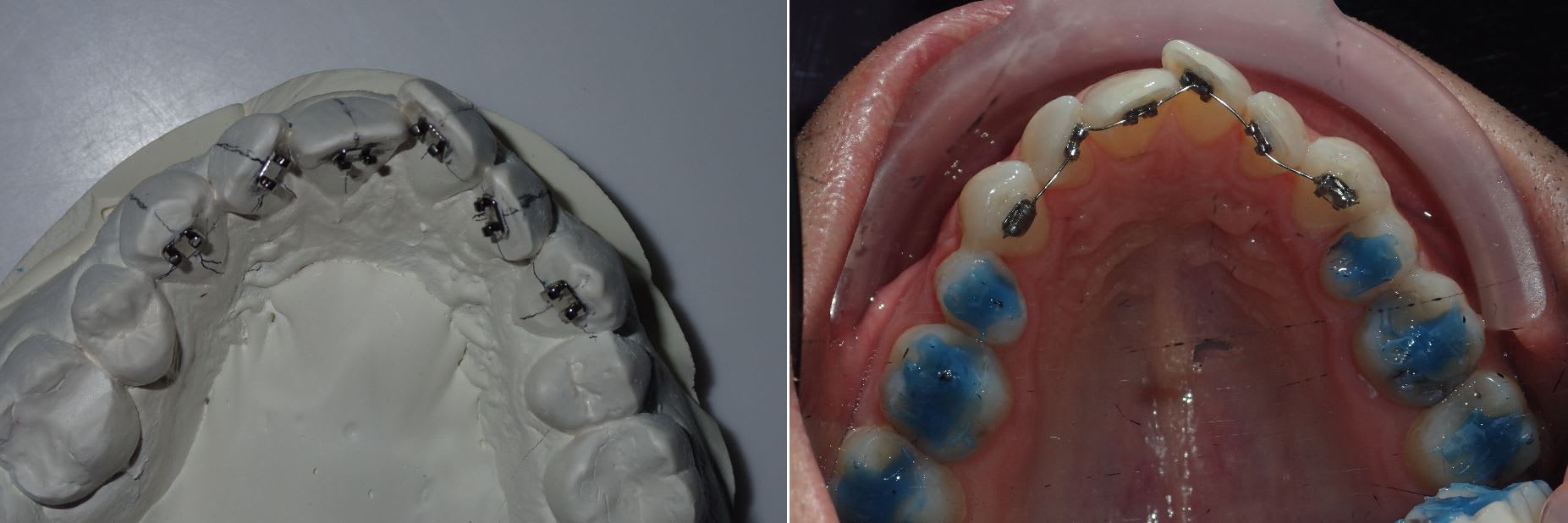 - Custome base : c'est ce que je fais. Tu colles le bracket sur le model en plâtre et transfert le tout en bouche.