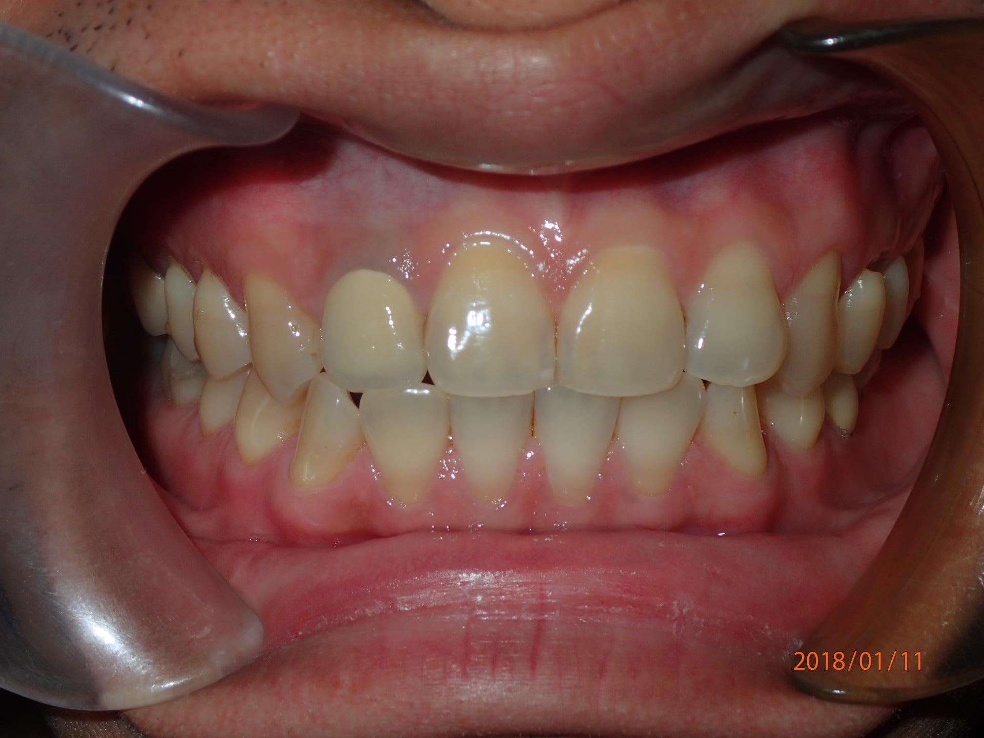 Ma patiente revue une dixaine de jours après la pose du niti 18 en haut et niti 16 en bas.