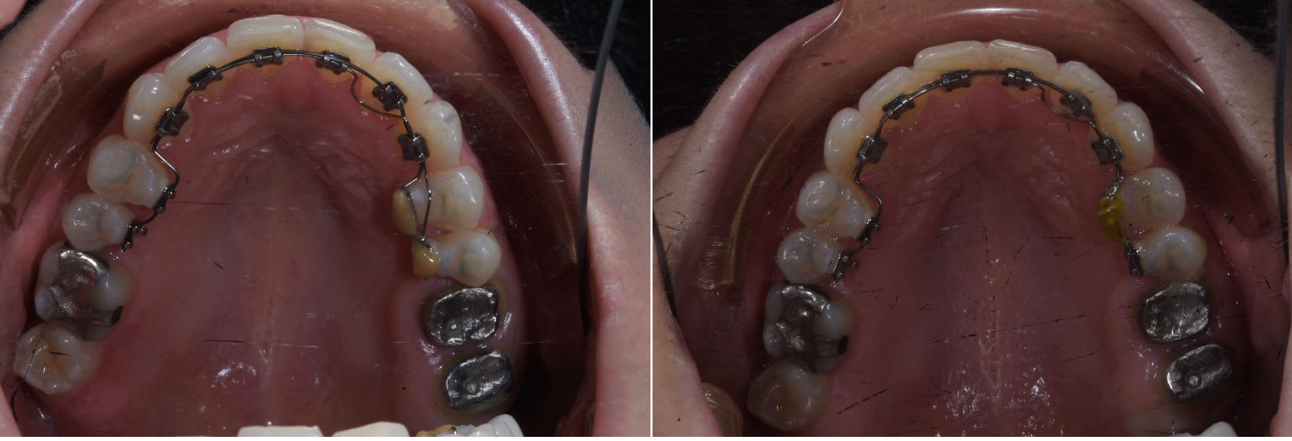 Attention au niveau méchanique, la dent va vouloir partir en vestibulaire donc avec un SS 14 en arque de base j'aurais fait une pliure en palatin pour compenser cette effets.