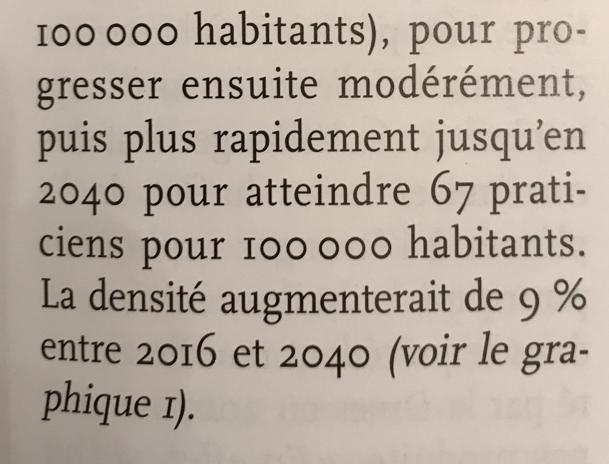 2) on voit très clairement qu’entre 2016 et 2040 la densité des praticiens par nombre d’habitants va augmenter de 9% . Est-ce réellement une bonne chose ?