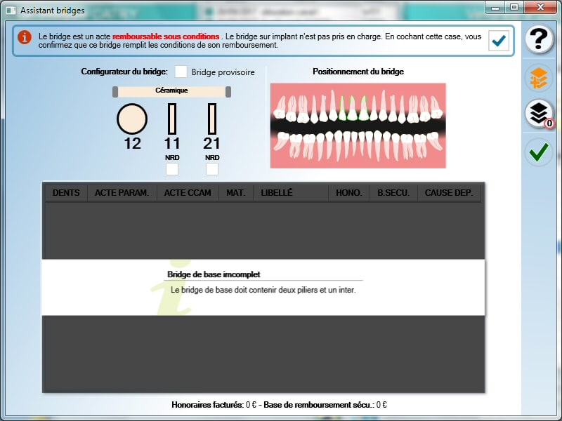 >: Le pilier supplémentaire ajouté au bridge de base n’est pris en charge que s’il ne peut être reconstitué de façon durable par une obturation< (voir bridge notifications ccam.pro)