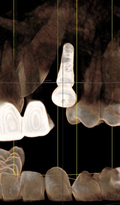 Je n'ai touché aucune dent pour la canine incluse d'après ce que je vois sur le cone beam de contrôle. Je suis bien passé entre les dents, impossible pour moi sans guide, la canine est toujours en place. 150 tours c'est pour les deux derniers forets les premiers à 1200.