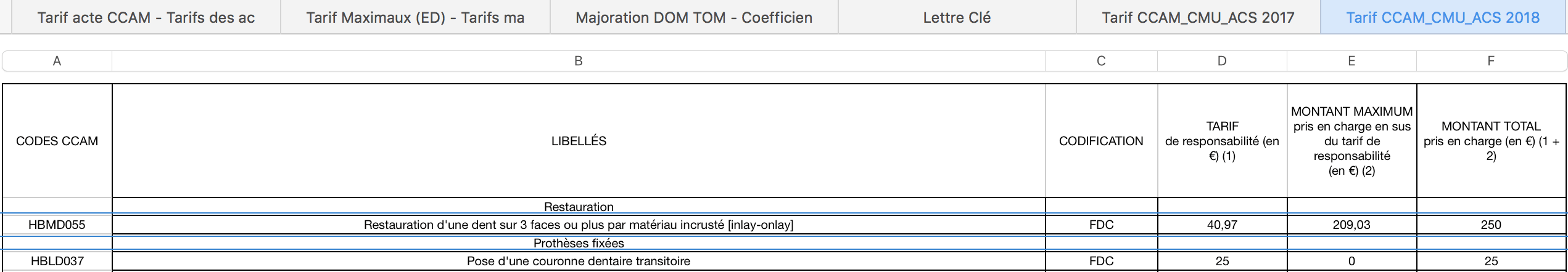 -Tu as les actes opposables, où tu peux "dépasser" dans certaines circonstances( par ex : DE =exigence du patient temps et lieu), ou selon ta situation au regard de la convention (par ex: DP =prof etc... ou secteur 2 pour les médecins). Donc en dehors des très rares DE et DP il n'y a pas de" dépassement" en dentaire.