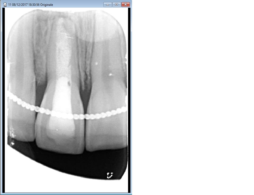 Bonjour et meilleurs voeux à tous, j'ai réalisé en 2013 une apexification avec un bouchon de mta chez ma jeune patiente suite à nécrose et fistule. Tout a très bien évolué et je pense que la dent est sauvée mais désormais on se retrouve avec une dent très grisonnante. Ma question est de savoir si on peut tenter un éclaircissement interne au perborate sur ce type de dyschromie. Je vous joint une radio au cas où, je n'ai pas pensé à prendre une photo!!! Merci pour votre retour