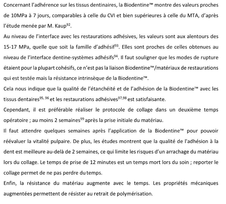 Exactement t’as tout compris, la biodentine est n’est pas du tout lisse. Mettre un matériau irrégulier et non lisse en sous gingivale c’est pas ce qu’il y a de mieux pour éviter la rétention de plaque. Il y a qu’à Voir les obturations biodentine comme sur la photo, c’est totalement irrégulier, et t’auras beau fraiser et essayer de polir, ça restera une surface irrégulière . Après t’as septodont qui va te dire qu’on peut le faire. Et puis surtout le moindre coup de fraise ou d’insert et la biodentine s’effrite.