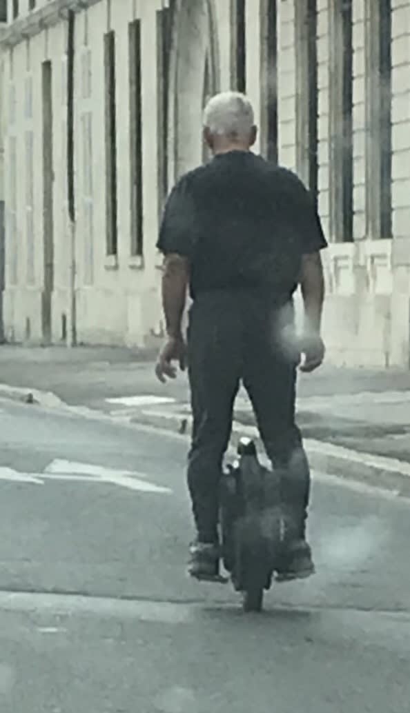 Le mec à 40km/h sans casque. À l’aise :)