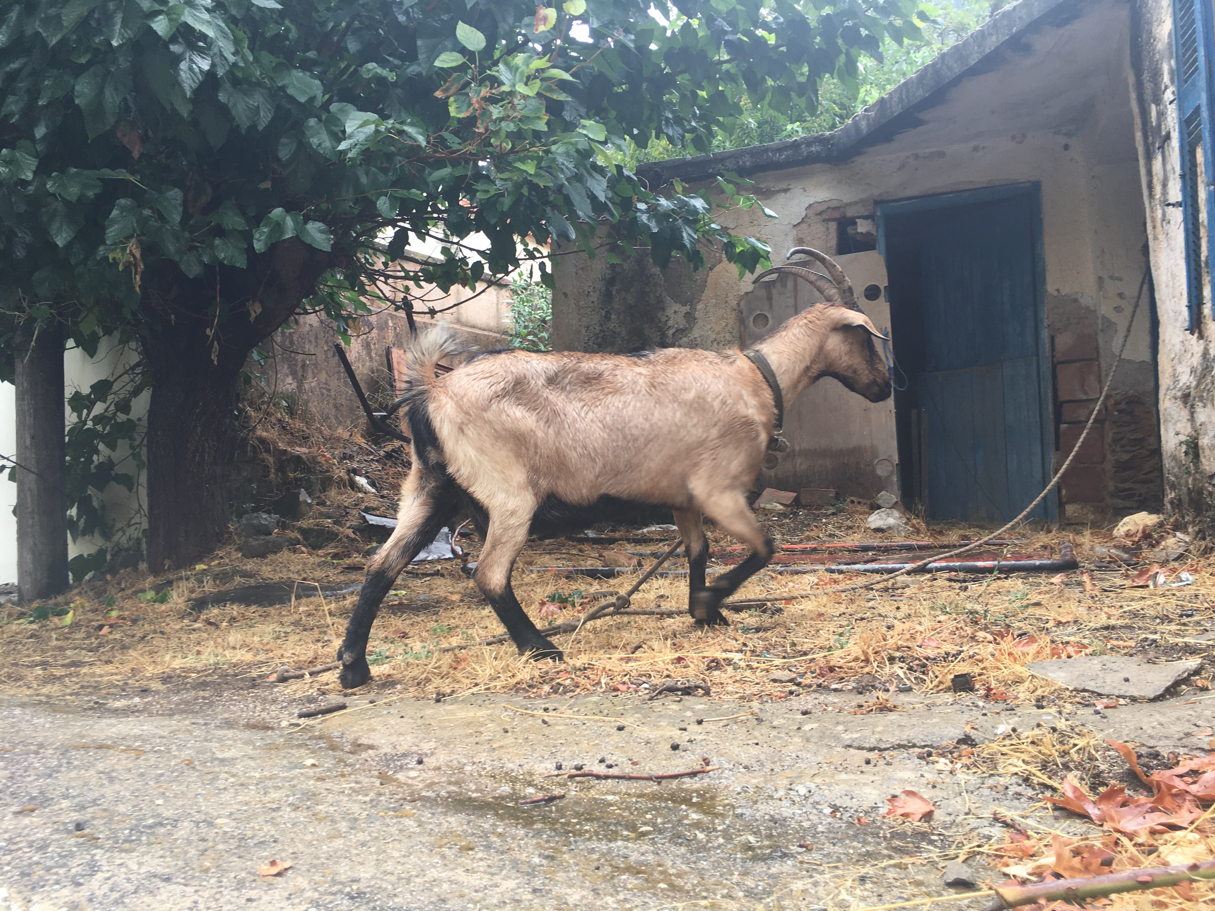 > déjeuné dans une taverne typique entouré de chèvres qui vadrouillaient sur la