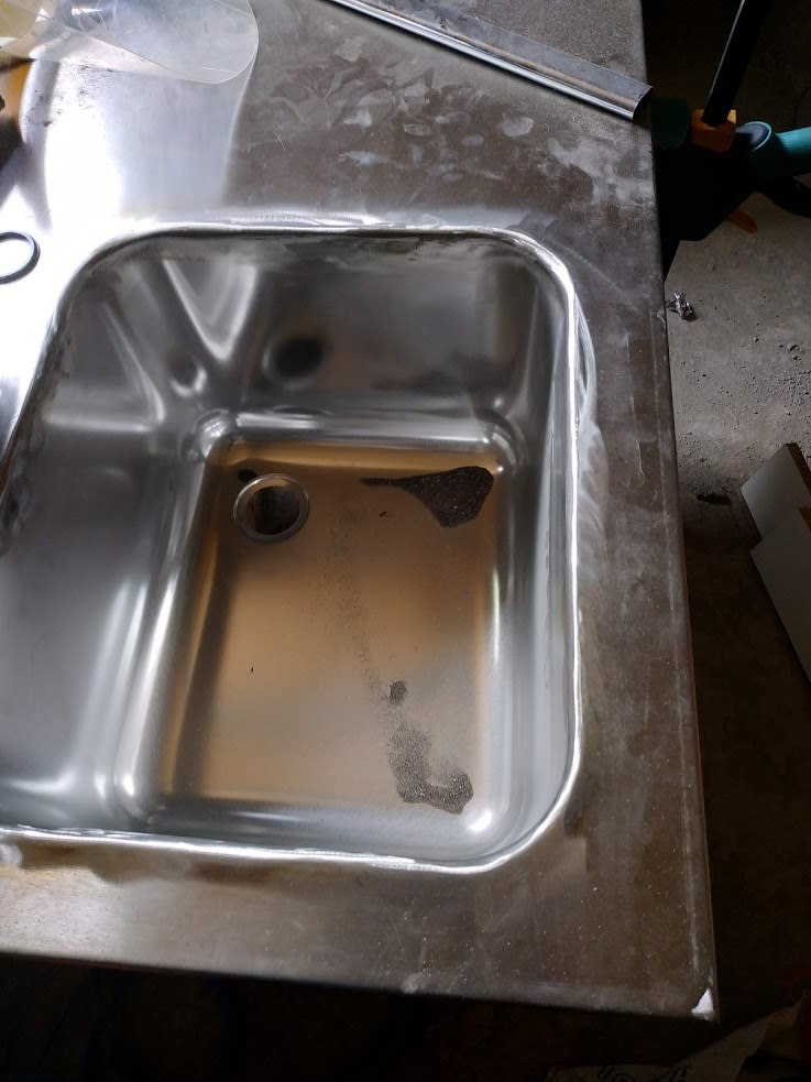 soudage d'un bac inox dans le prolongement d'un plan de travail inox.