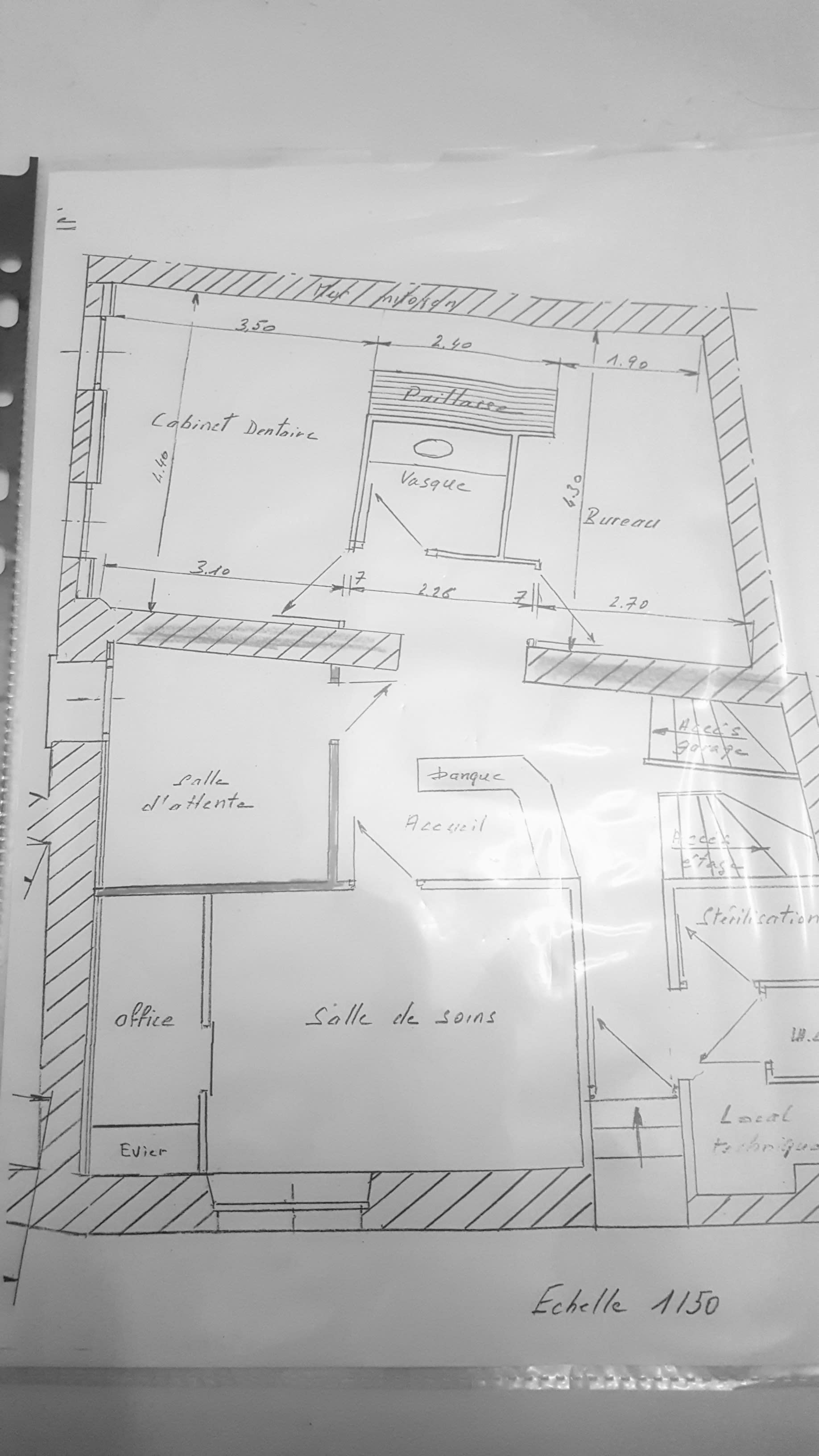 Salut les ingenieux ! J ai besoin d un petit avis ... je transforme mon ex cabinet dentaire en maison pour de la location. Voici les plans avant. Et sans les murs . Dans cet espace j aimerais caser un salon, une cuisine une vaste salle de bain. A vos idées !
