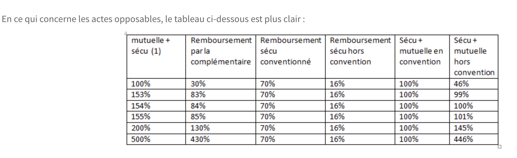 Intéressant cette histoire de 16 % de remboursements pour les soins opposables. Qu'en est il pour la prothèse. Mutuelle + sécu =300 % ca veut dire que la mutuelle rembourse 230 % et la sécu 70 % et que donc hors convention ca donne 230% + 16 % ?