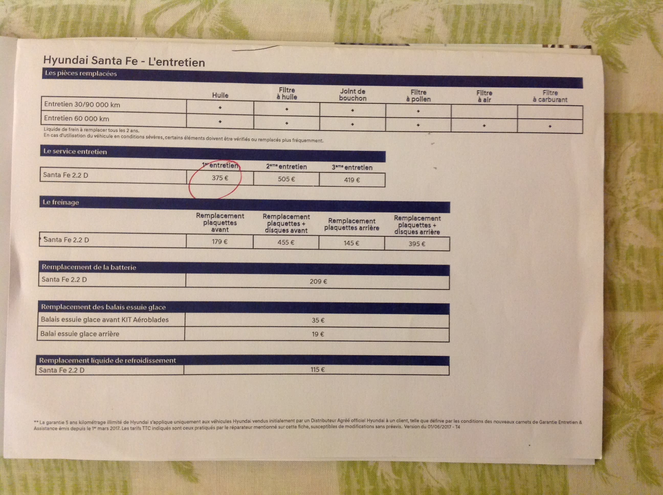 Je viens de faire la révision des 30000 kms et le changement des 4 roues d'hivers contre les roues d'été pour la somme de 408 €.