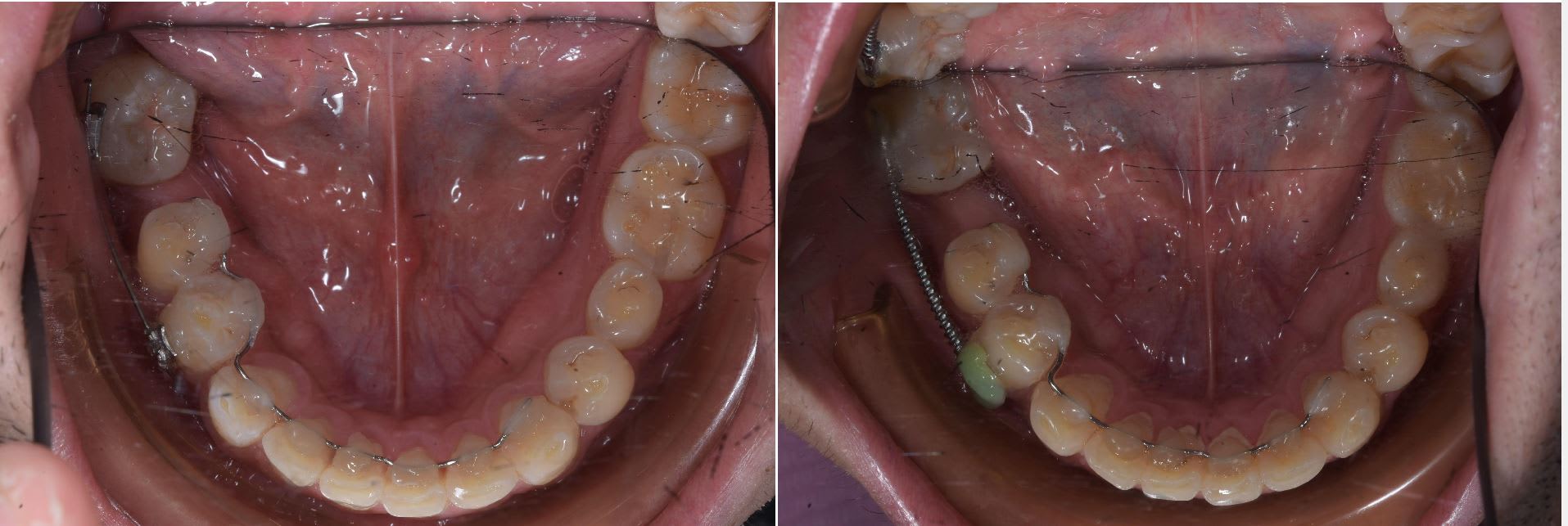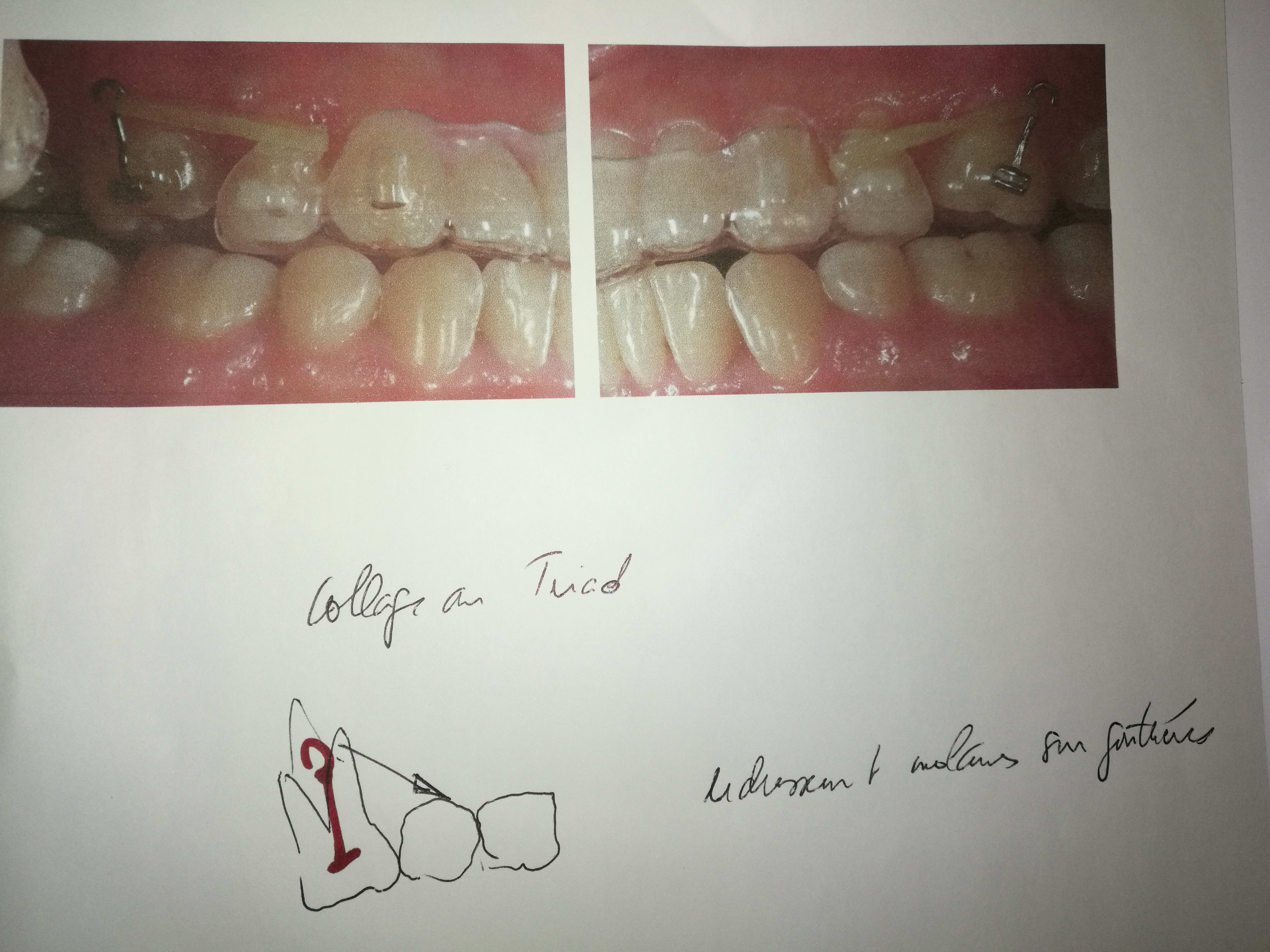 - la molaire va vouloir s'egresser ( ici pas trop un soucie avec l'occlusion mais quand même à surveiller ) la j'ai put mettre direct un niti 18 et la semaine prochaine je devrais passer sur du niti 16 22 avec un set pour l'intrusion