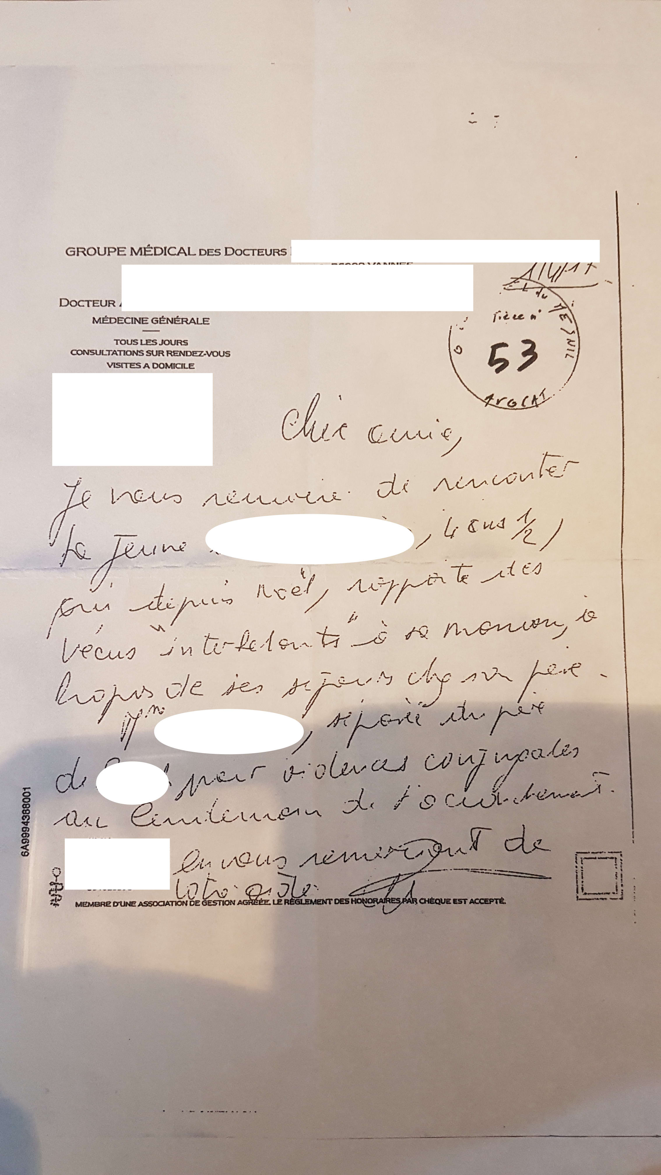 C'est le fils d'un ami qui demande une garde alternée pour sa fille , son ex lors du passage au tribunal fournit une pléthore de témoignages écrits dont ce courrier d'un médecin , inconnu dans le milieu familial .