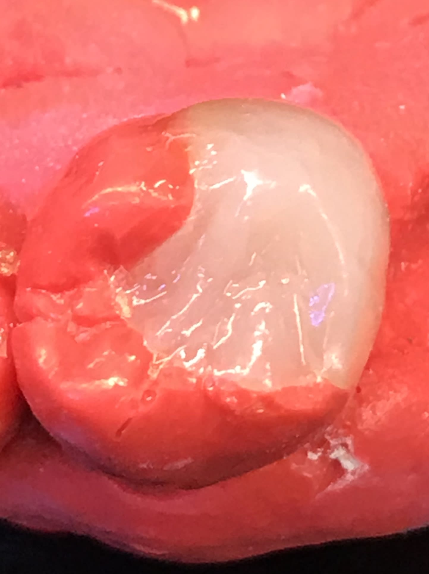 Le montage de l’onlay comme ça c’est 5 min. Et le silicone rouge c’est une prise rapide.