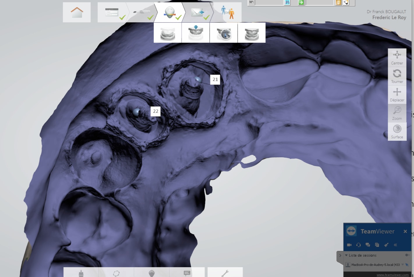 " Dans ton cas tu colles une grille derrière une de tes préparations proximales ( histoire de donner un repère à l'engin). Puis empreinte des provisoires en place, antagonistes, occlusion. Ensuite tu effaces tes provisoires, empreinte des moignons tu effaces ta grille empreinte des crêtes et tu termines tout stellite + fixe en one shot. Je vais t'en donner moi de l'efficience. "