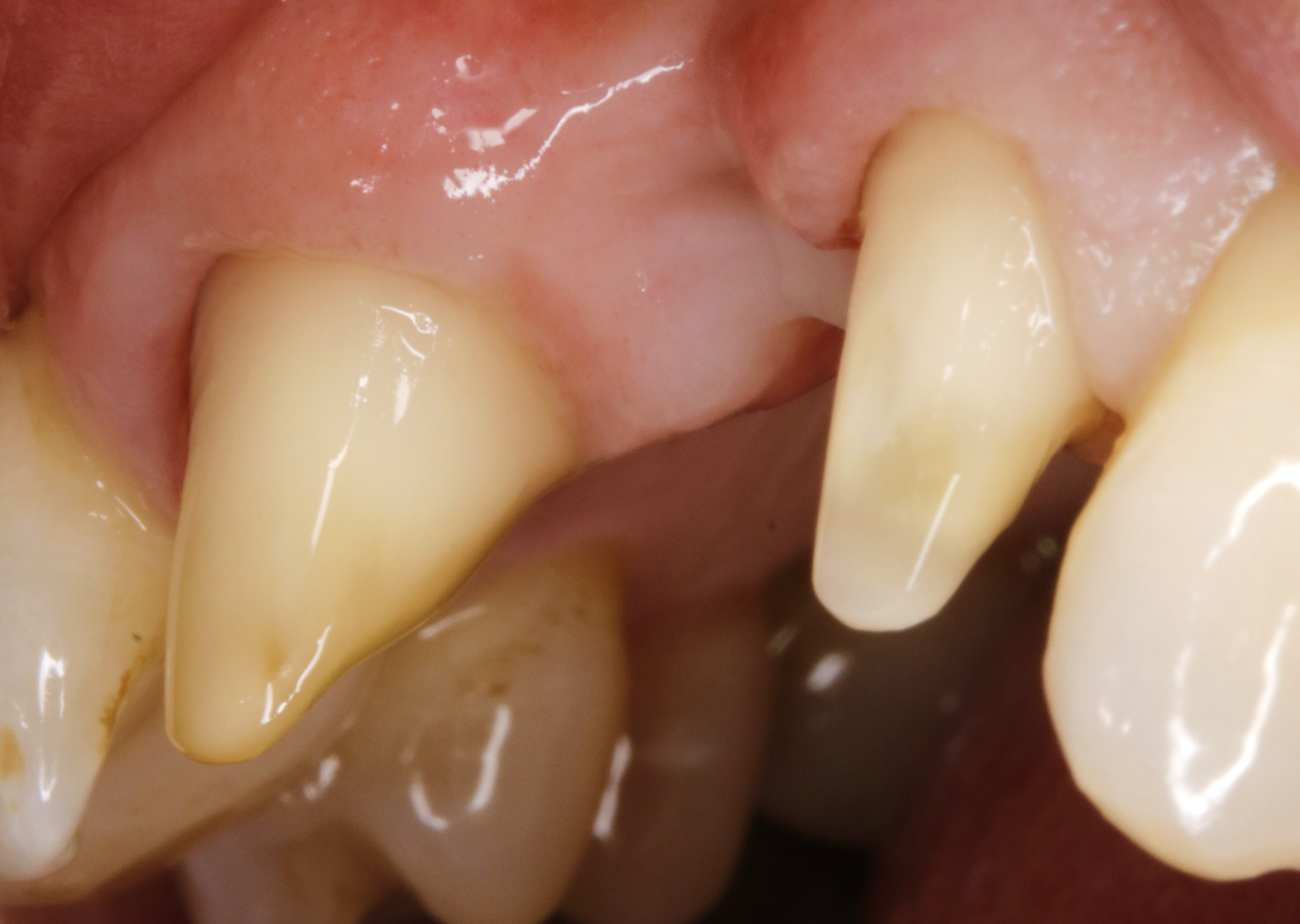 là le depart des racines est concave , et en plus la gencive est à ras .