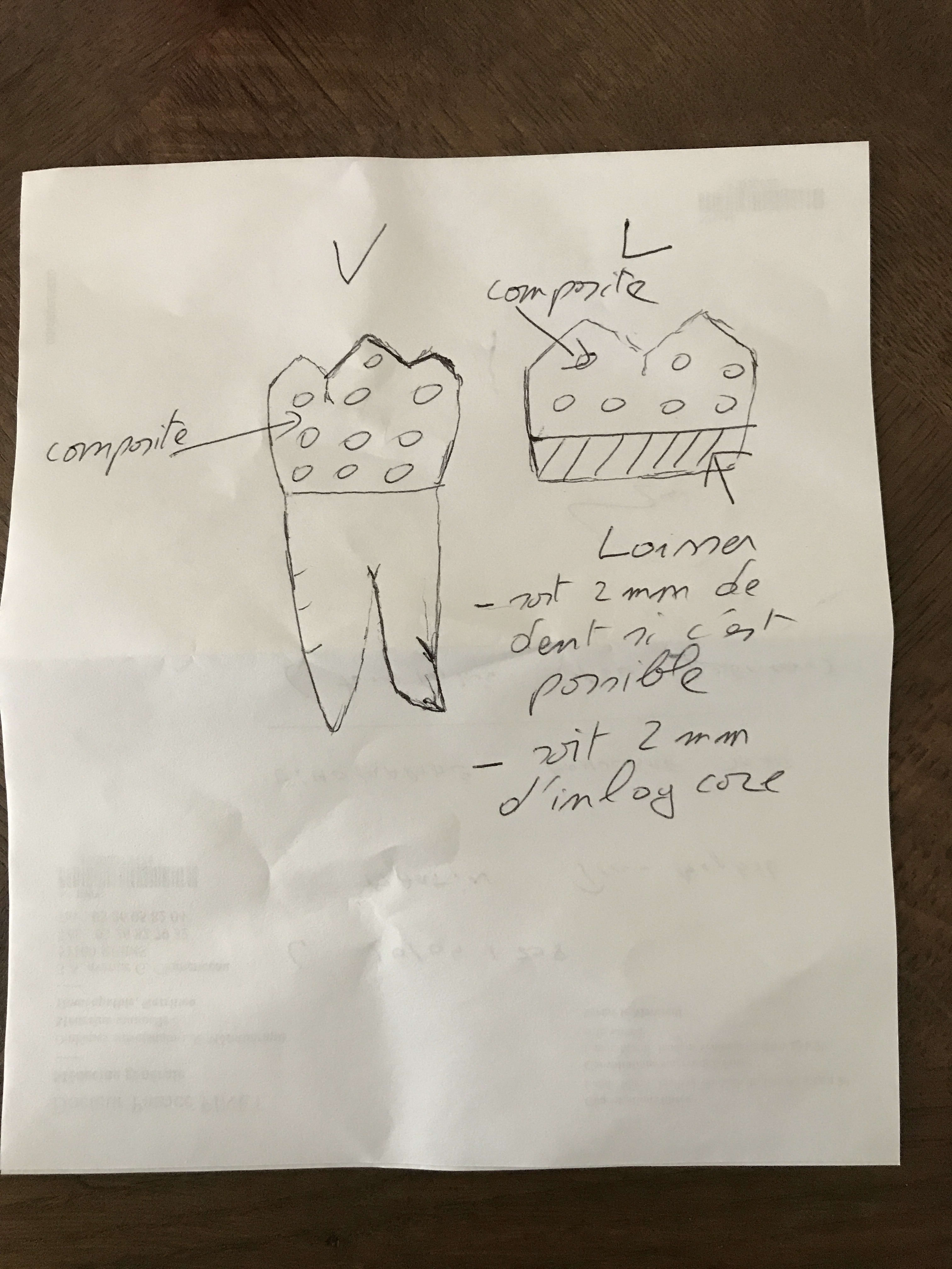 -> comme la prothèse ne recouvre pas toute la dent nous pouvons la considérer comme un onlay composite . Et donc résultat ils ont une couronne blanche en postérieur sans que ça nous coûte rien. Un onlay en compo chez les chinois c’est 50 balles voir même moins