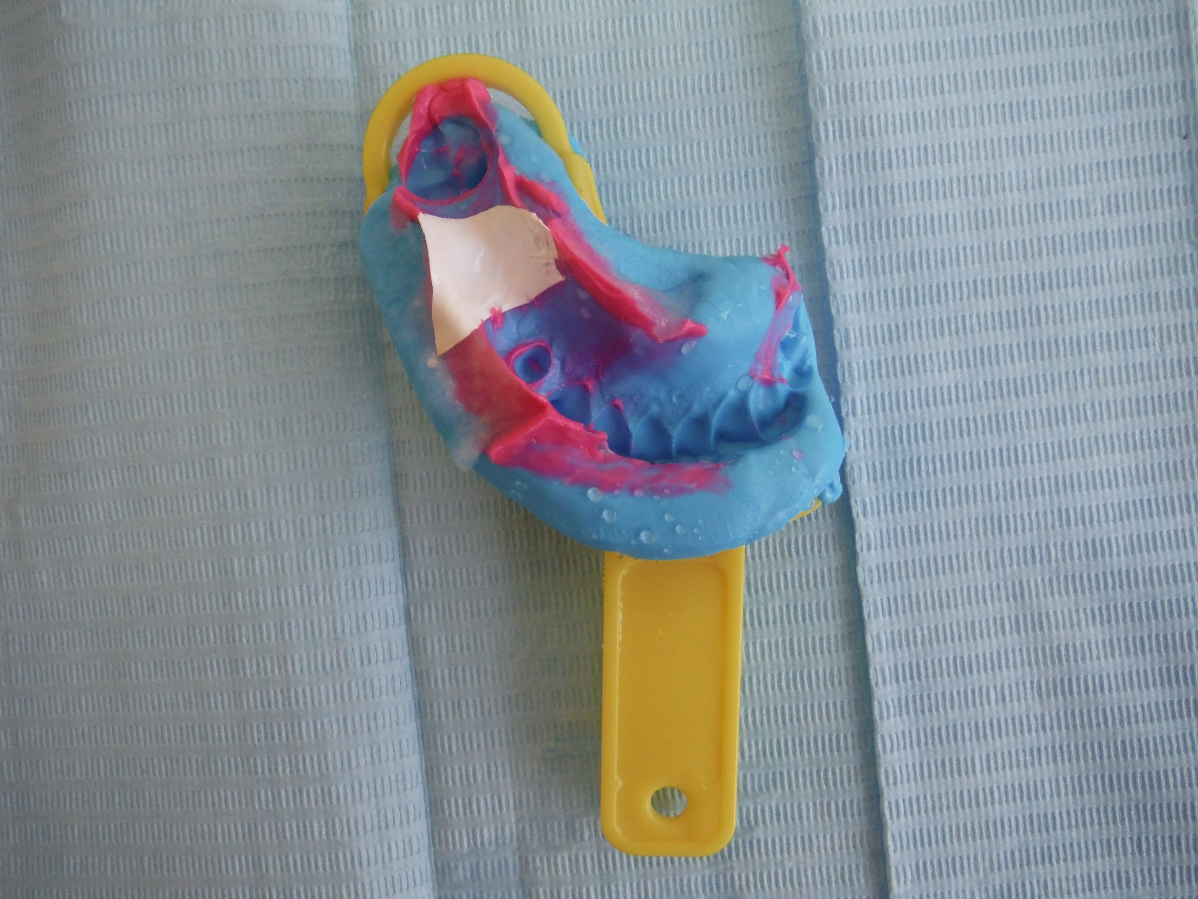 J'avais à faire une adjonction de dents sur une pap mand et au maxillaire le patient fait un bilan pré-implantaire, c'est alvéolysé +++, si je prends une empreinte, j'extrais, ce qui n'est pas souhaité pour le moment.