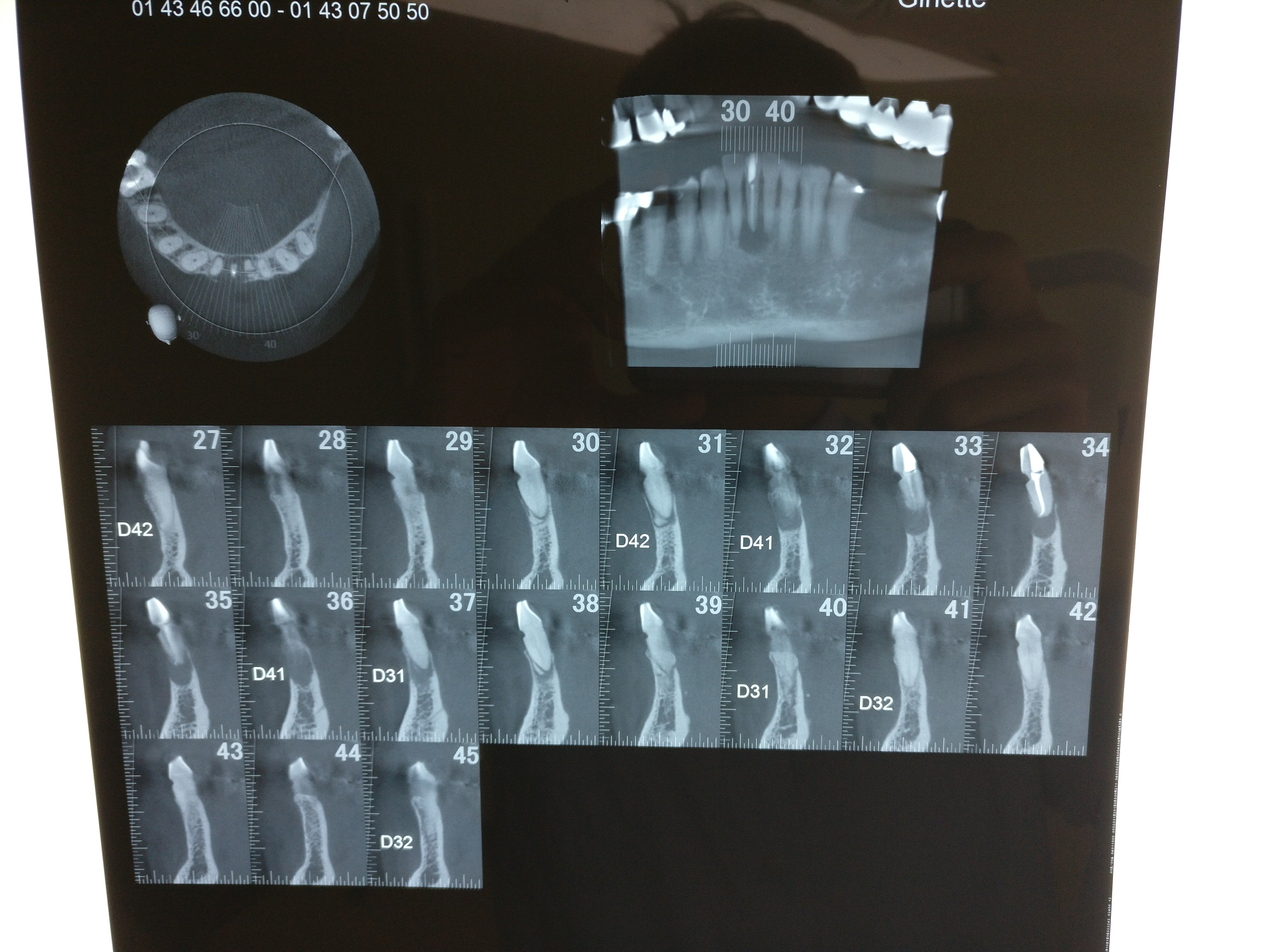La saloperie... Pourtant cliniquement j'ai rien trouvé. Je vais retenter avant de prendre le davier. Et pour les morceaux de "racines" en apical de 41 et 32 vous pensez quoi?