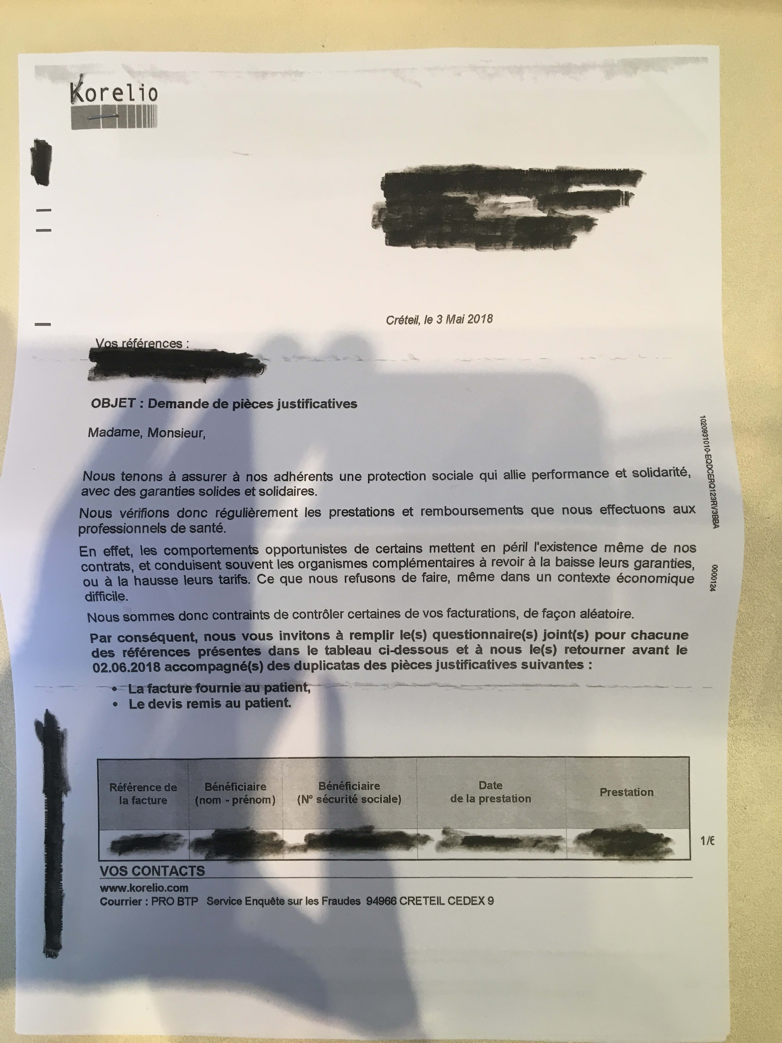 Déjà eu ce type de courrier je ne réponds pas ,le patient a tous les éléments: devis, facture acquittée...à l'époque j'avais transmis double au conseil départemental des CD et j'avais pas eu réponse personnalisée la dessus...