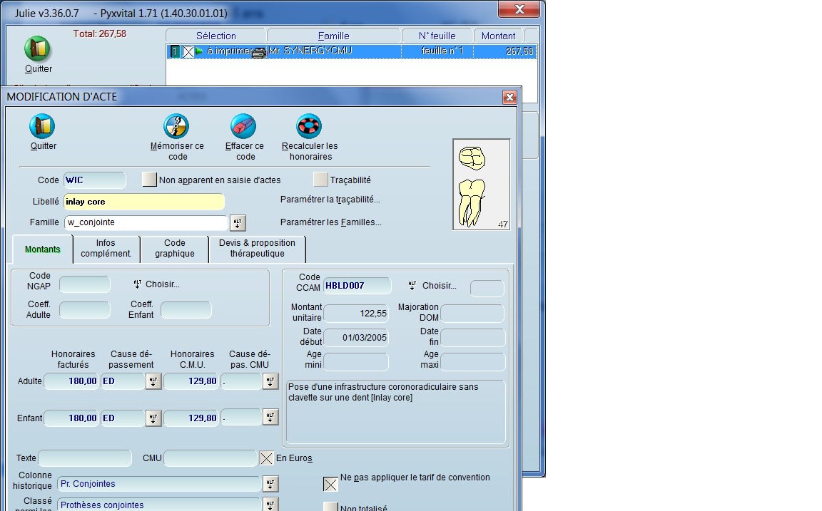 Quel est le tarif? IL me semble pourtant que c'est bien celui-ci ? En tout cas c'est celui que m'a indiqué la CPAM dans un mail lors des nouveaux tarifs CMU il y a quelques mois et celui que Julie a paramétré lors d'une mise à jour ( je n'ai rien touché).