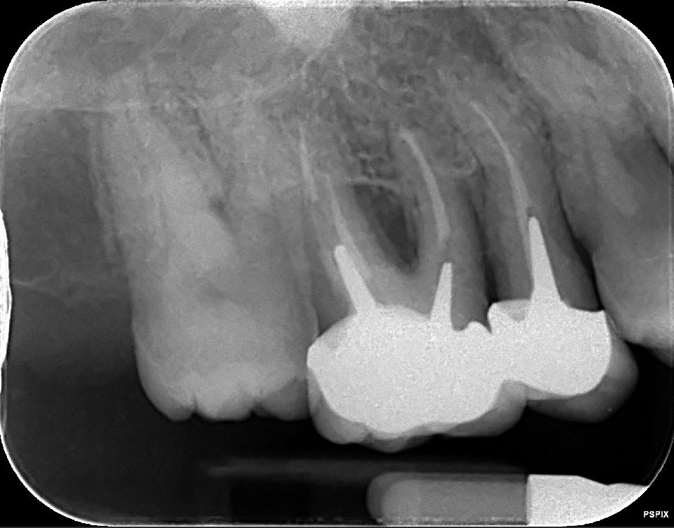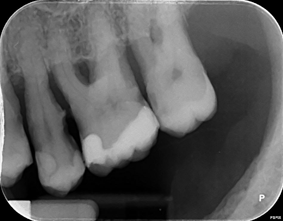 1) de l’extraire -> pourtant la dent est absolument conservable (pas de problème paro, juste besoin de dépulper et de couronner)
