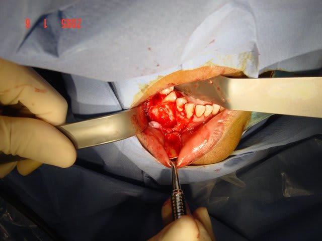 Pour le lambeau, tu as ruginé en t'arrêtant au dessus du foramen mentonnier ou tu as disséqué pour visualiser le nerf et le protéger ?