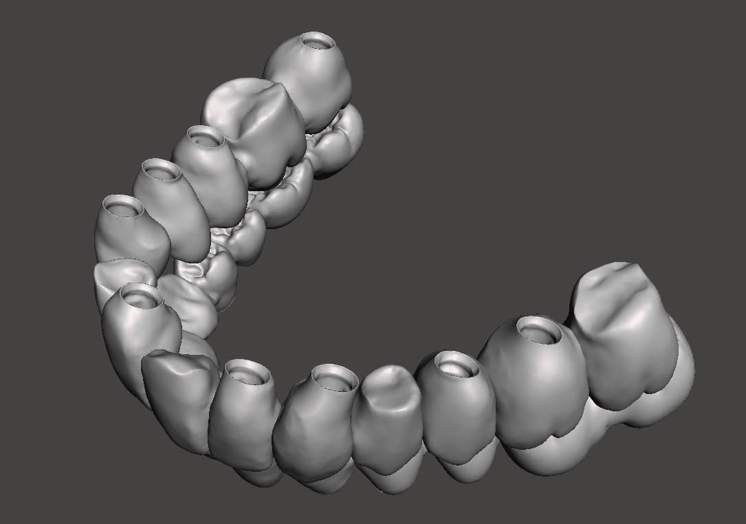 C’était un test pour des cas plus complexes ; mon but était de tout traiter en numérique sans passer par des modèles et de tester l'impression des provisoires en résine .