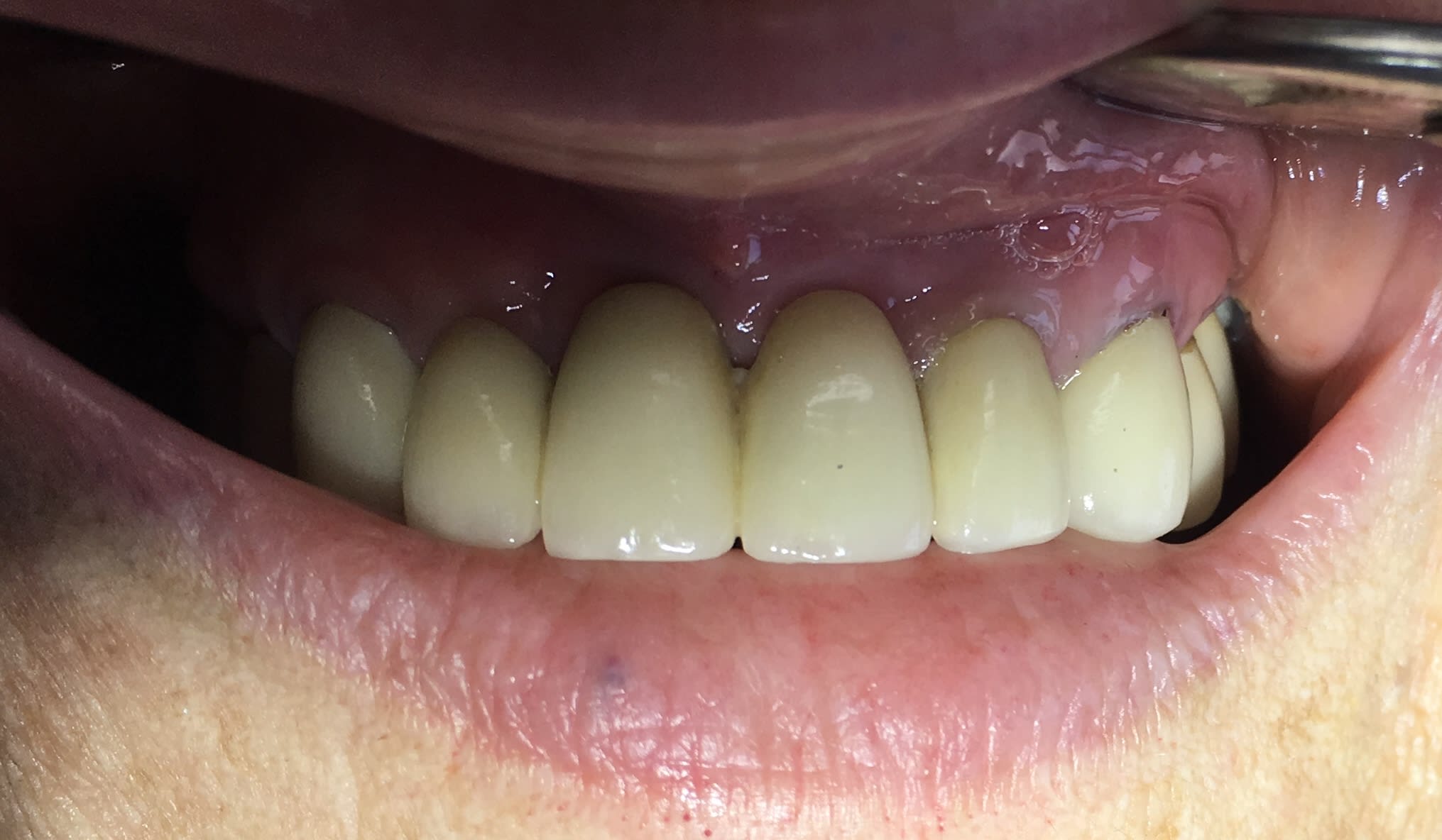 Dans la même série, bridge de 12 à 22 transvissée sur 2 implants datant de 5 ans; ma patiente de 90 ans, reçue en urgence évidemment : « docteur ça bouge! »