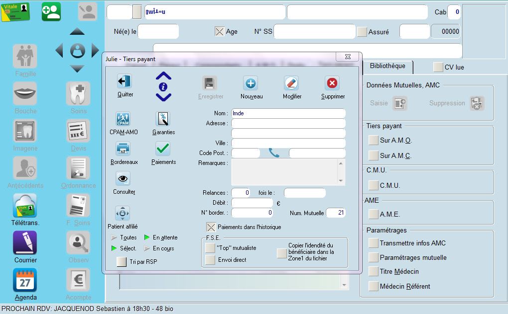 Et je viens de voir que lorsqu'on fait un TP sécu, il y a marqué 1/3 payant et non pas: tiers payant mutuelle comme avant. Félicitation! Juste une remarque de grincheux: C'est Tiers payant (c'est un tiers qui paye) et non 1/3 payant (on n'est pas réglé au 1/3).