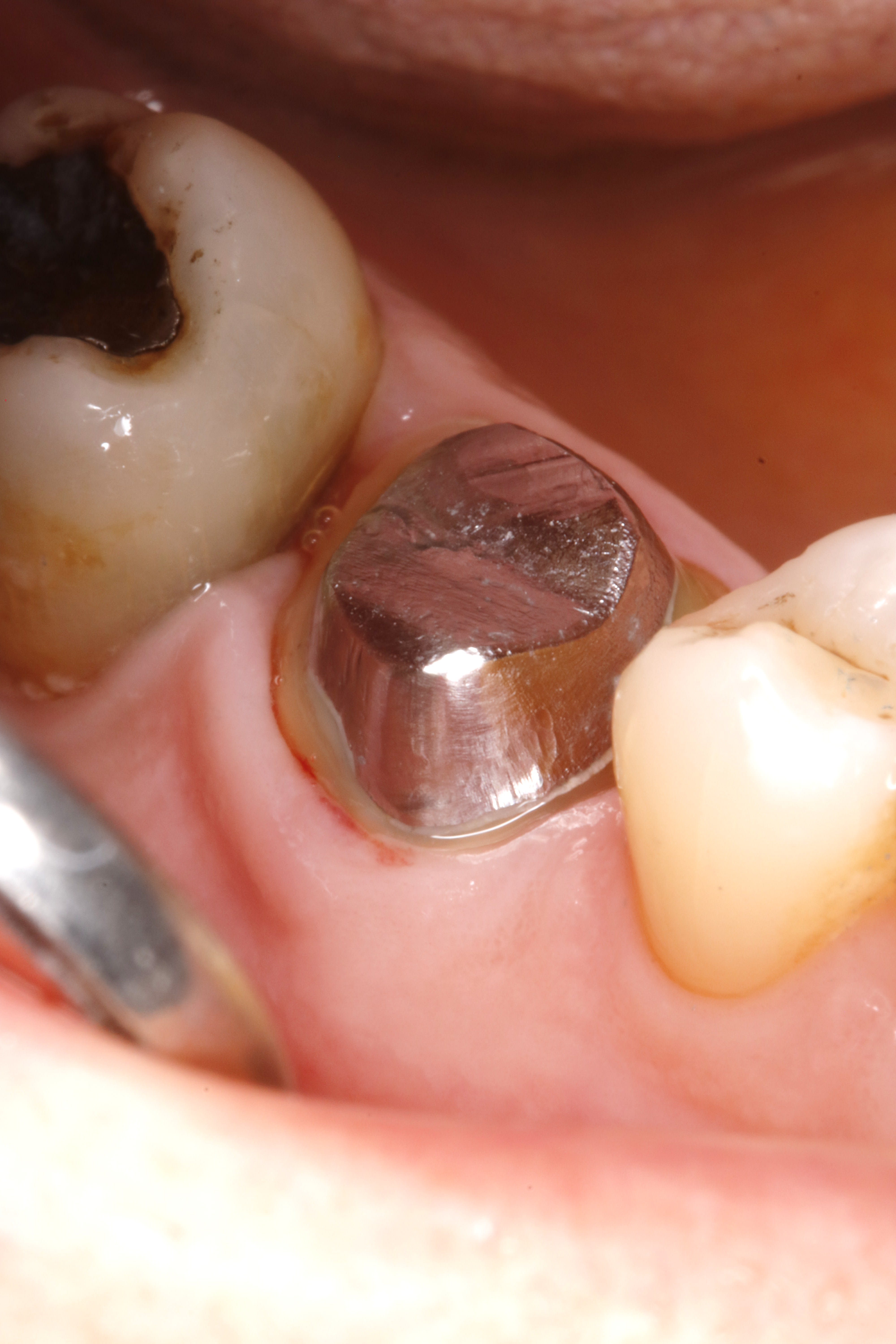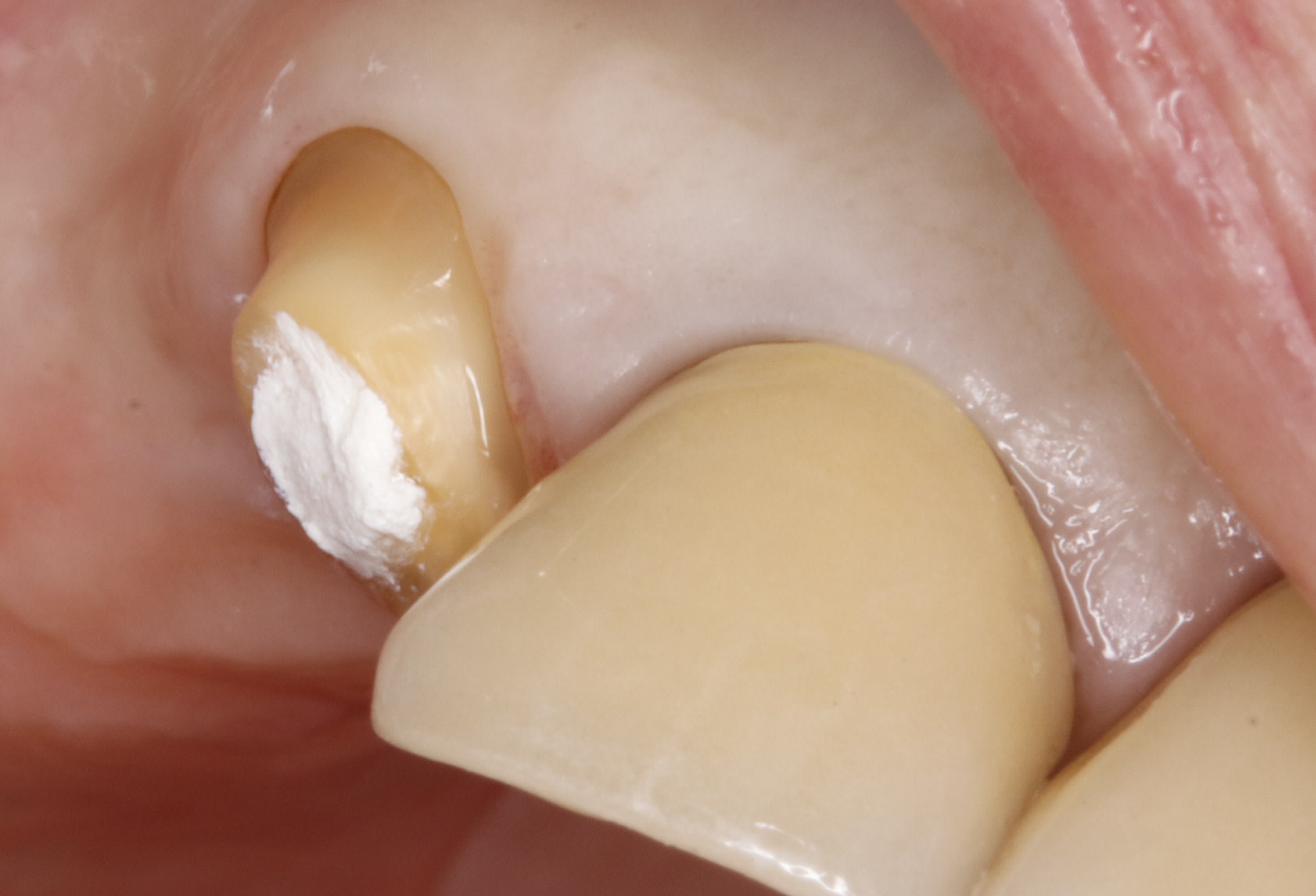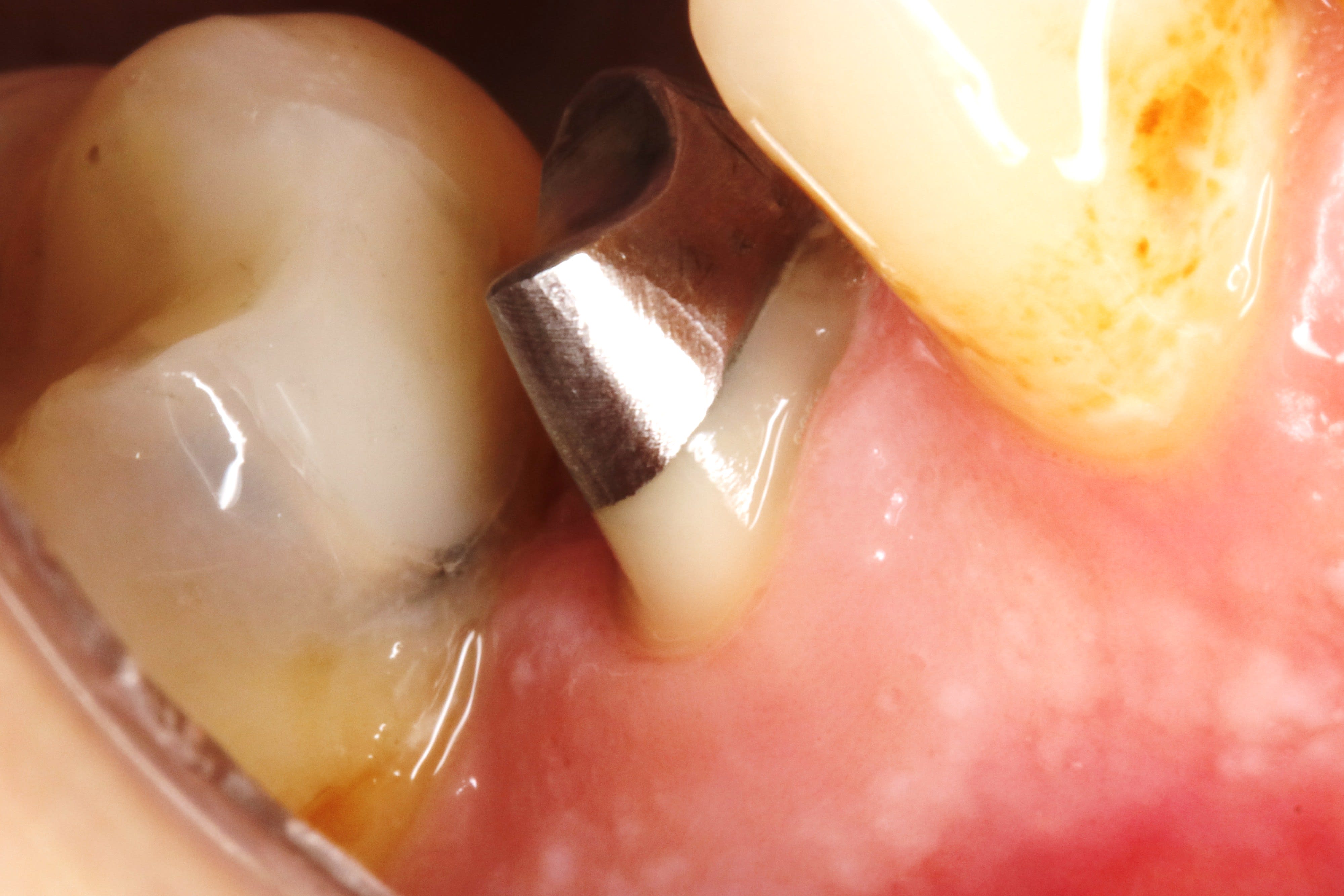 Comme je suis un tordu il m'arrive de faire cela, une prov mais pas à la limite, j'ai pas pris de photo en bouche, flemme, mais la gencive ne saigne pas, ne bouge pas bien qu'elle soit un peu rougeaude.