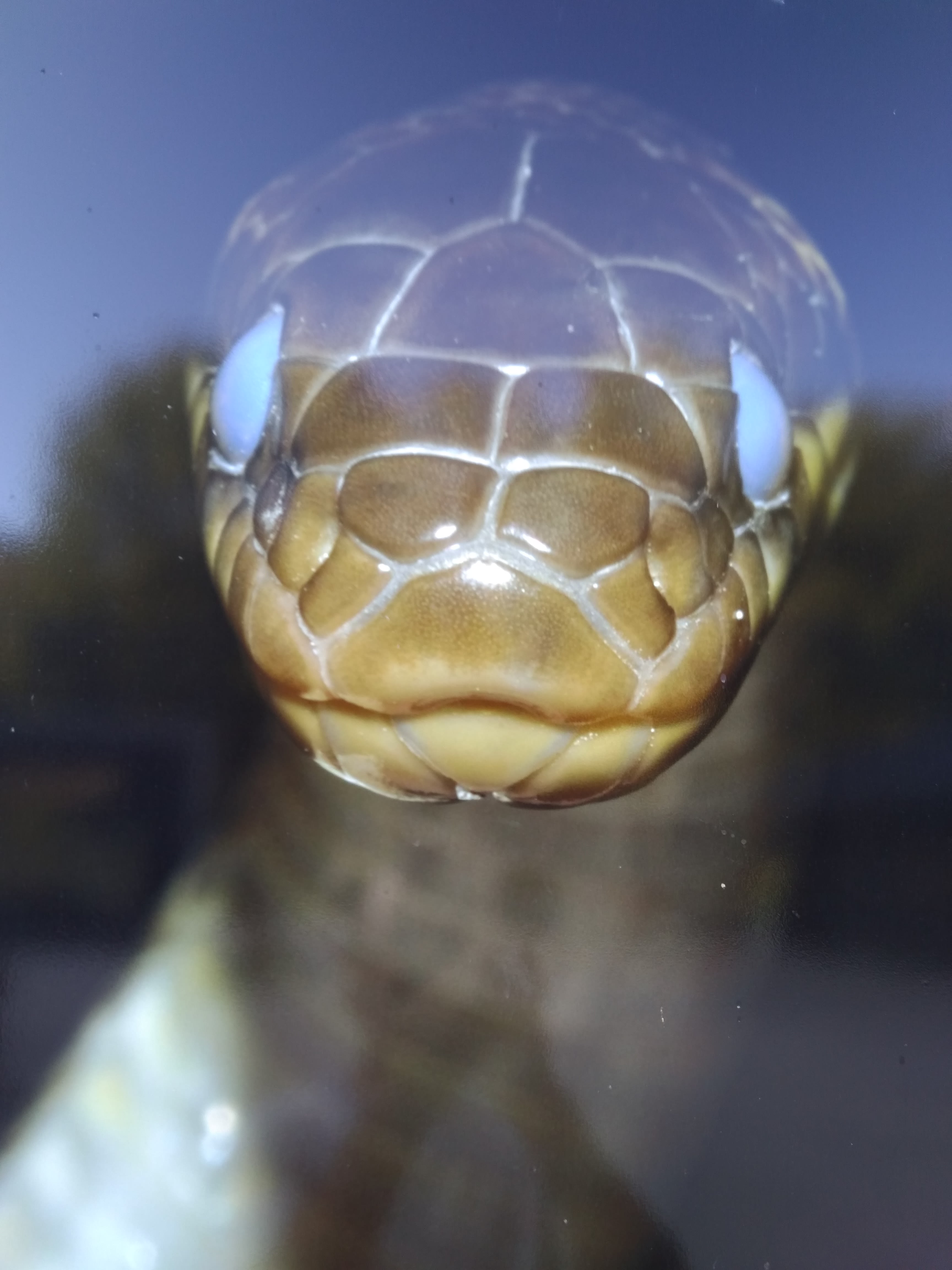 Les yeux bleus c'est une mue qui s'annonce, après il seront blancs puis mue, il y voit trop rien à ce moment.