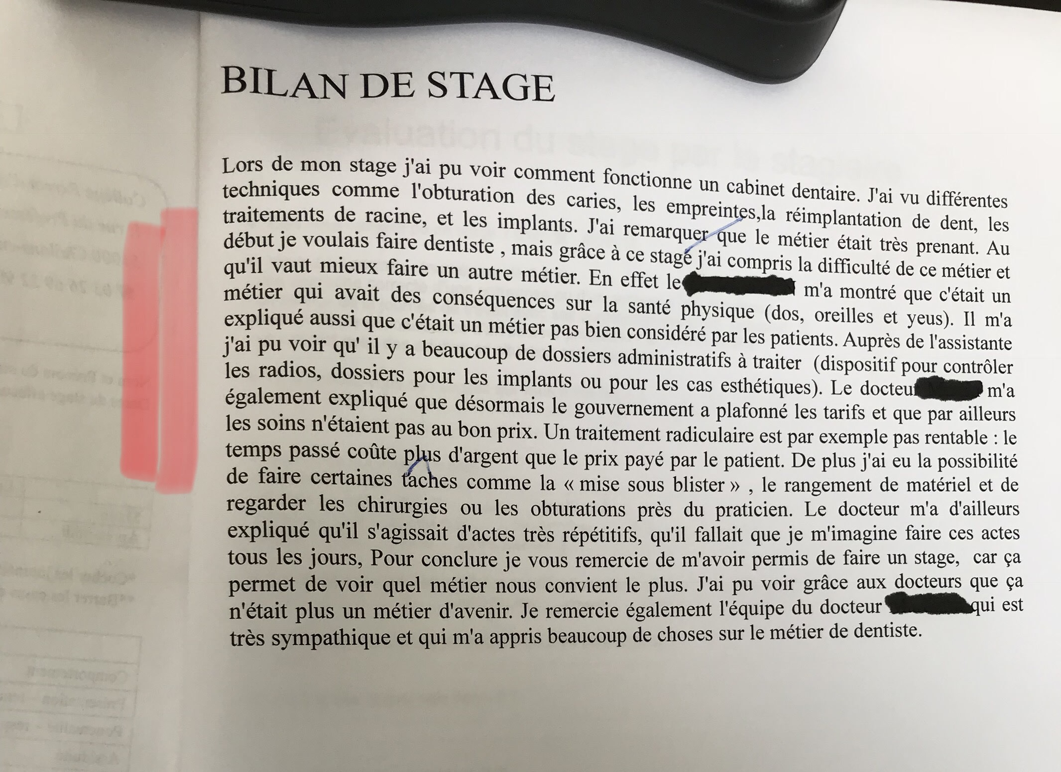 Ça a été déjà corrigé par le MGEN :) , là il m’a filé son rapport après correction . C’est surprenant, il a relativement bien compris et retranscrit ce que je lui ai dit .