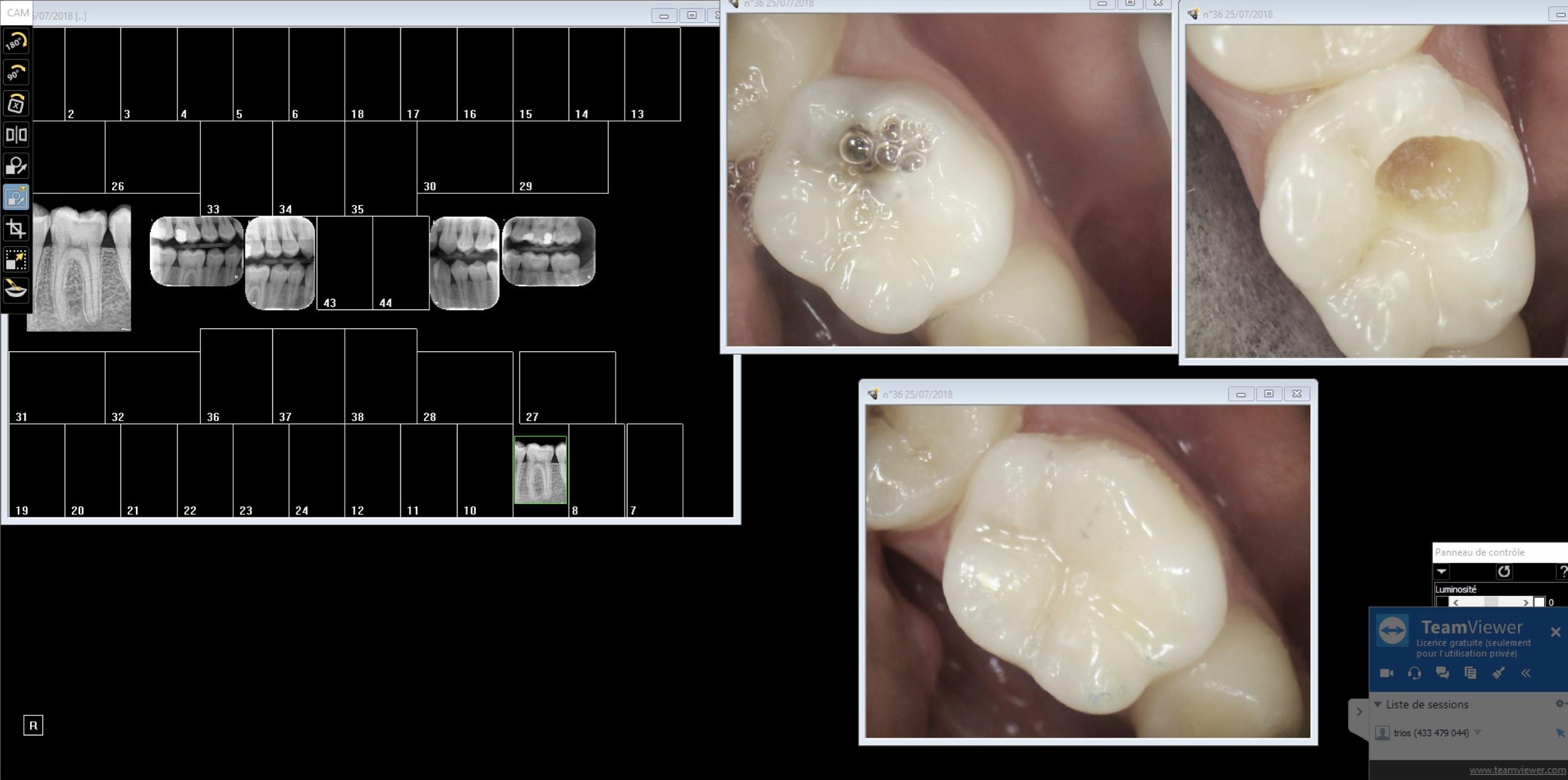 Exemple nouveau patient consulte pour problème sur 36. 1 radio rétroalvéolaire 36 indication carie pénétrante(capteur) , 2 anesthésie 3 rétrocoronaires indication : recherche de caries ( plaques) 4 compo 36.