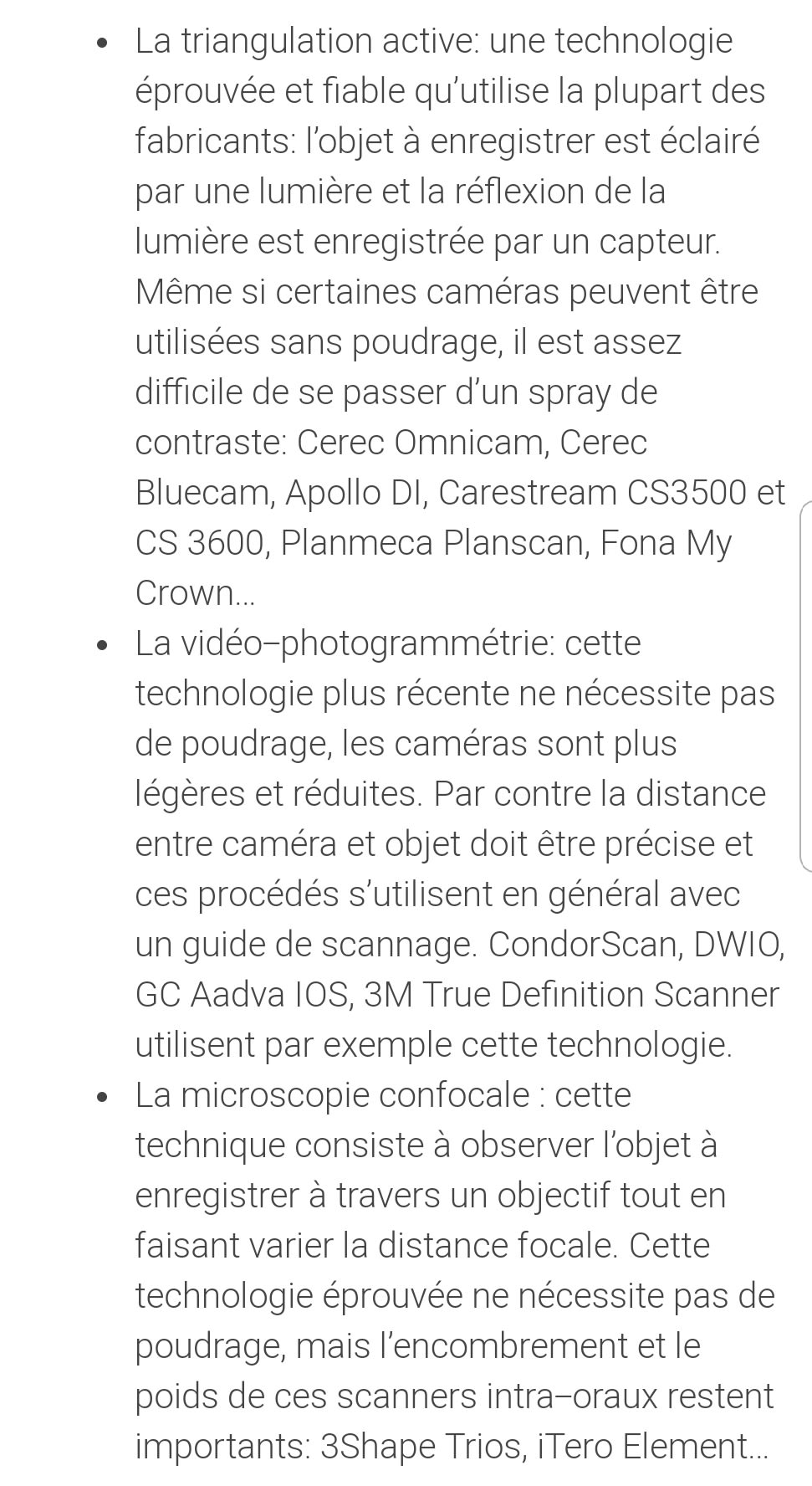 La medit n'a pas d'environnement de modélisation comme la 3Shape (connexion directe avec le labo équipé de 3Shape), elle est plus lente, pas de prise de teinte automatique, mais si cela reste une bonne caméra couleur. La technologie Medit est un nuage de point versus confocal pour 3Shape (cf fichier attaché).