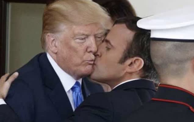 - Macron qui fait un petit bisou avant que Brizitte l’amène à l’école . Ah non là c’est pas Brizitte , c’est Trump qui l’amène à l’école. Autant pour moi