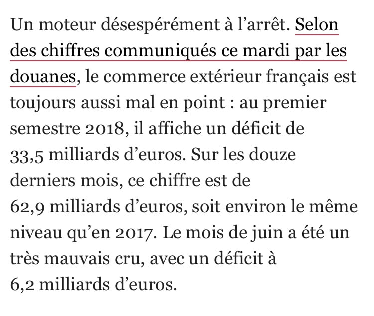 Casa Il est de combien le déficit de la balance commerciale sous Macron ? 63 milliards sur les 12 derniers mois . C’est pas fameux tout ça.