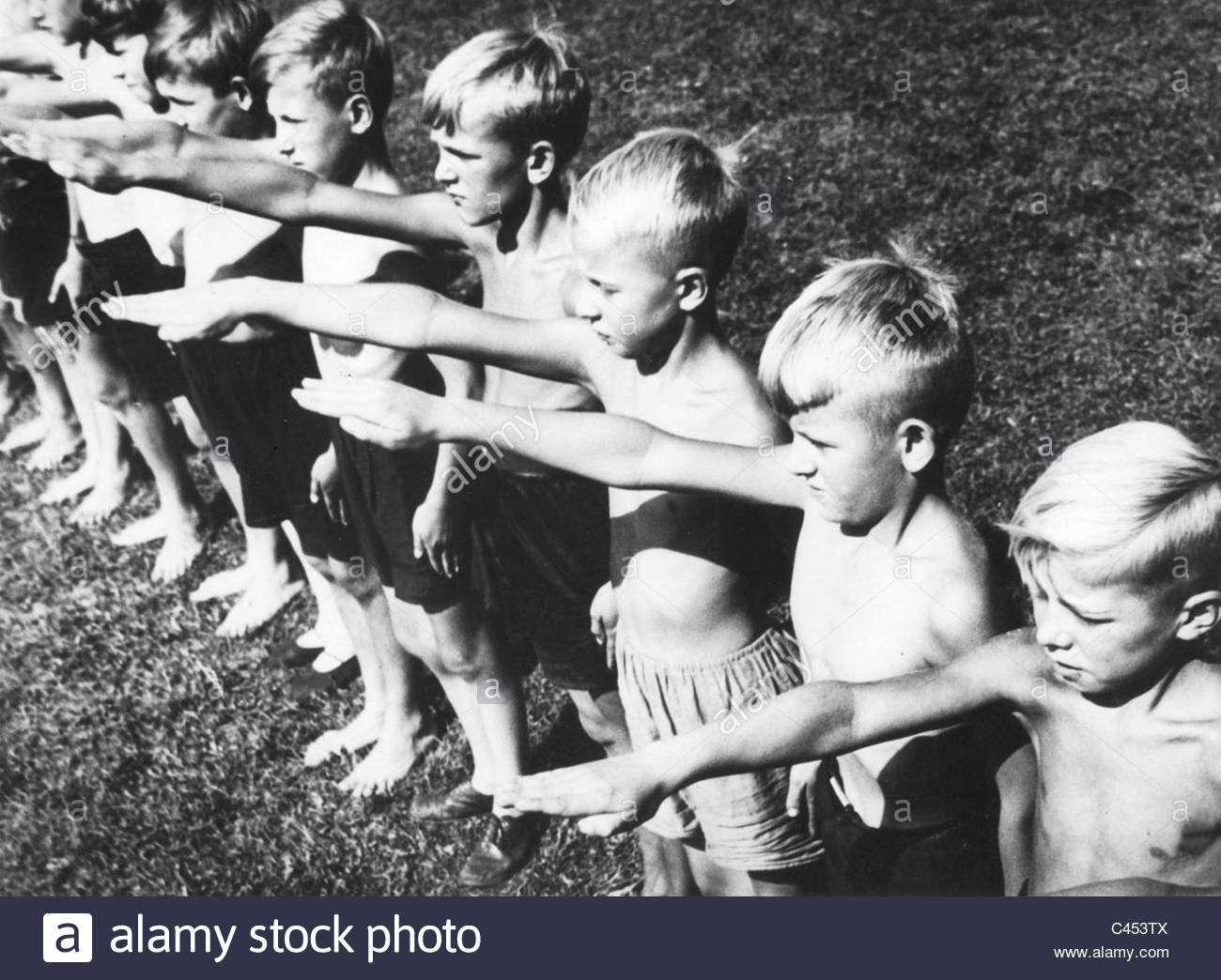 Hokusai, rien a voir, ta photo est ancienne. Le scoutisme utilisait jusqu'a la fin des années 60 le bras relevé à l'horizontale, à la "mussolinienne "(qui a repris cela des romains), par exemple lors de la "promesse".