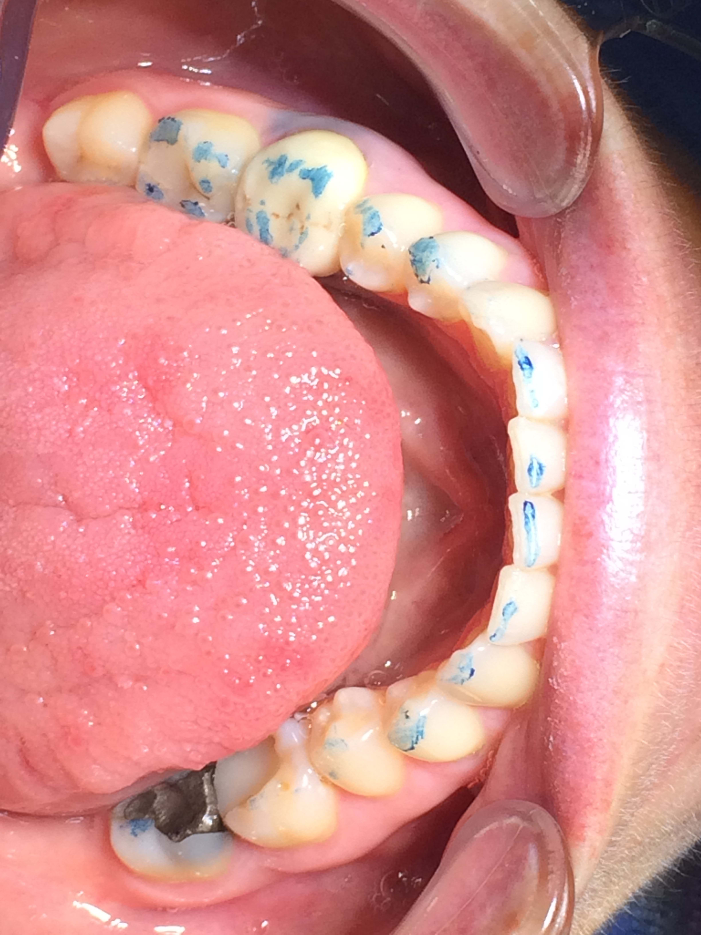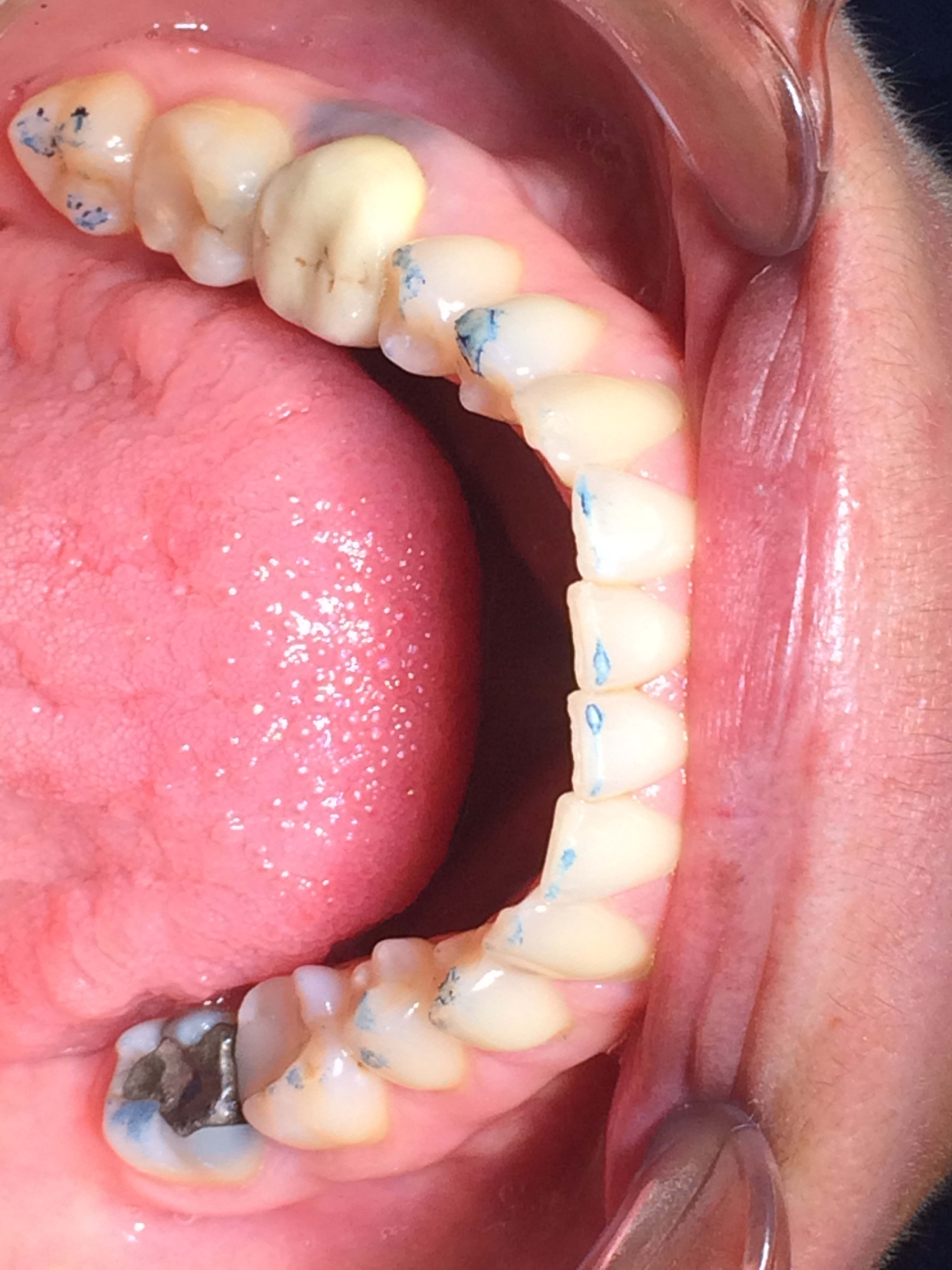 ... elle m'a autorisé à retoucher le pan vestibulaire externe de 34... Je me suis arrêtée là car elle se sentait bien mais ne voulait pas plus ! "