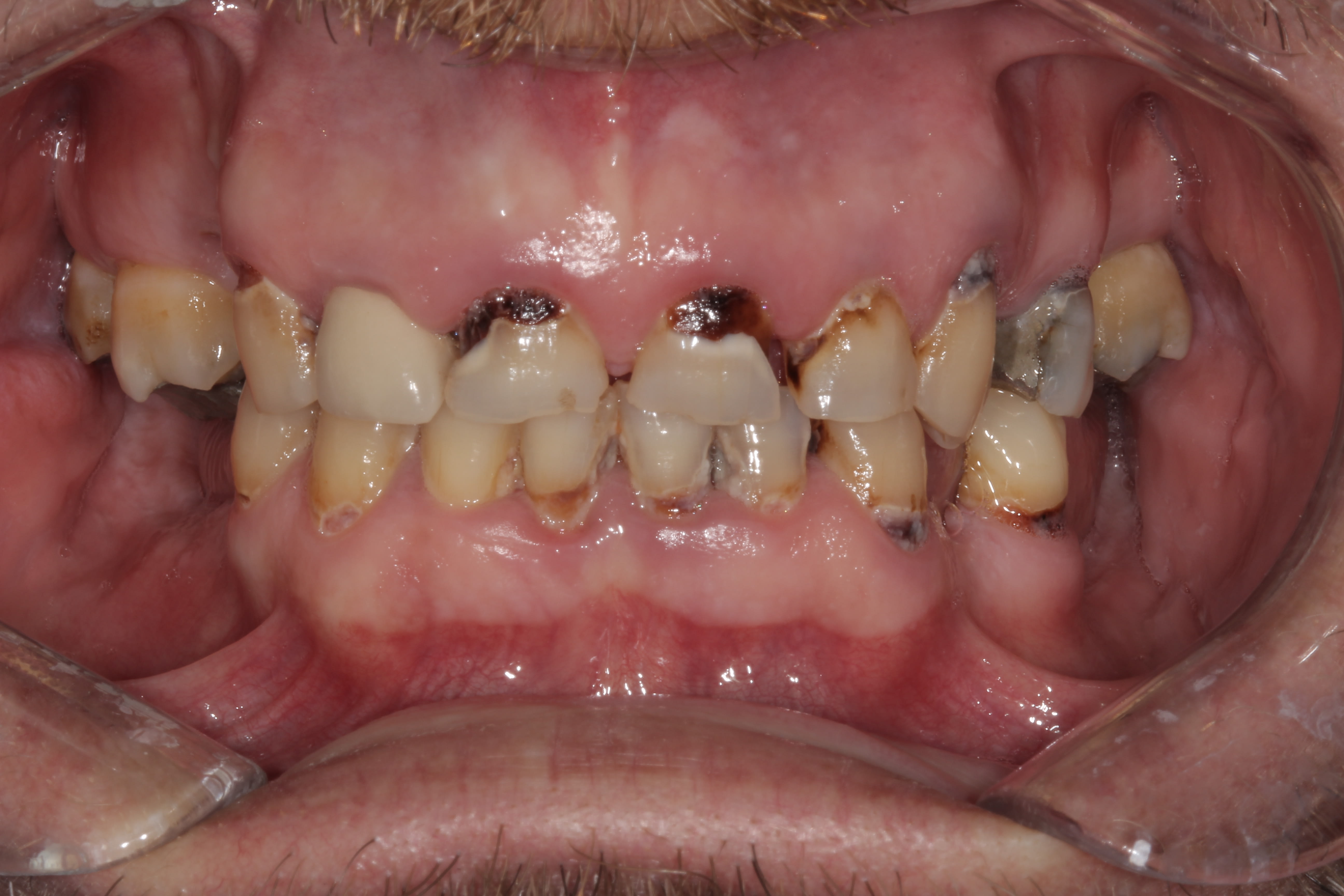 Cyberquenottes,voici un cas par exemple. j' ai du devitaliser la 21, les autres sont vivantes, j' ai reconstruit au compo. maintenant c' est pret pour grosso modo tout couronner.