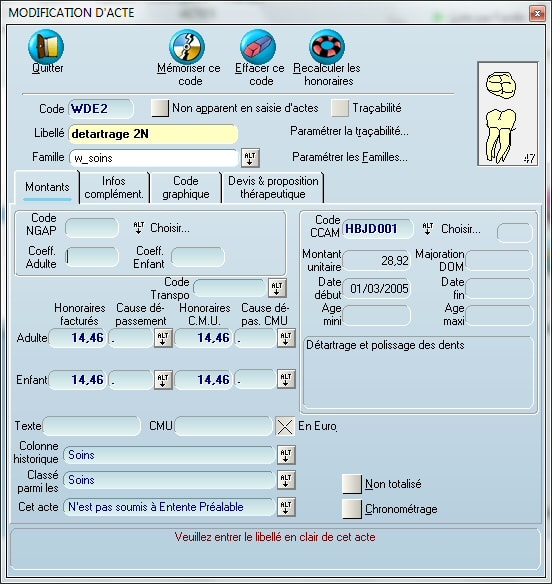 > et les deux actes paramétrés pour la double cotation du detartrage (faille de la