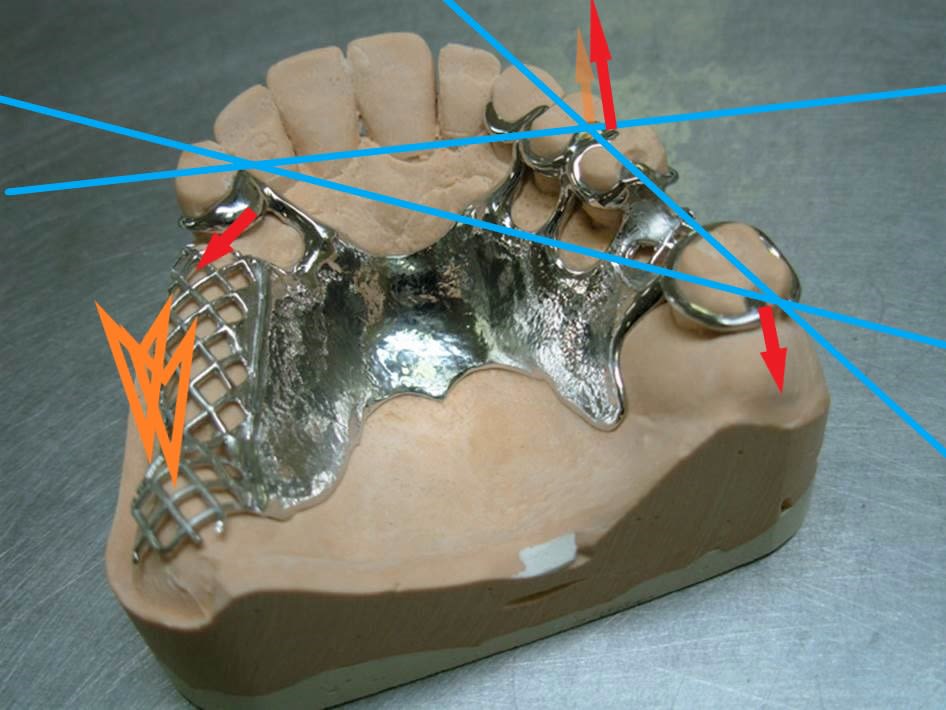 normalement , sur l'édentation intercalaire les taquets sont de chaque coté de l'indentation ç est le principe d Akers (.Akers etant l inventeur du bridge amovible en quelque sorte )