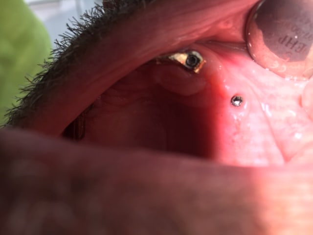 En fait, la barre en or vient de péter au niveau d'une soudure au niveau de 22 et la prothèse résine qui résidait dessus est explosée.