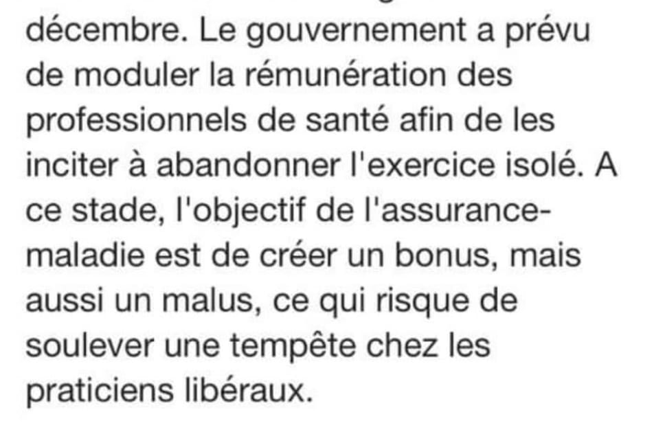 Oui oui quand ils en auront terminé avec nous nul doute que quand tu n'auras plus rien à perdre tu te montreras aussi diplomate. Note : un malus concernant les honoraires de praticiens exerçant seuls est à l'étude. Ils sont surtout là pour protéger les "hauts du front" qui décident ce qui est bon pour nous. -)))