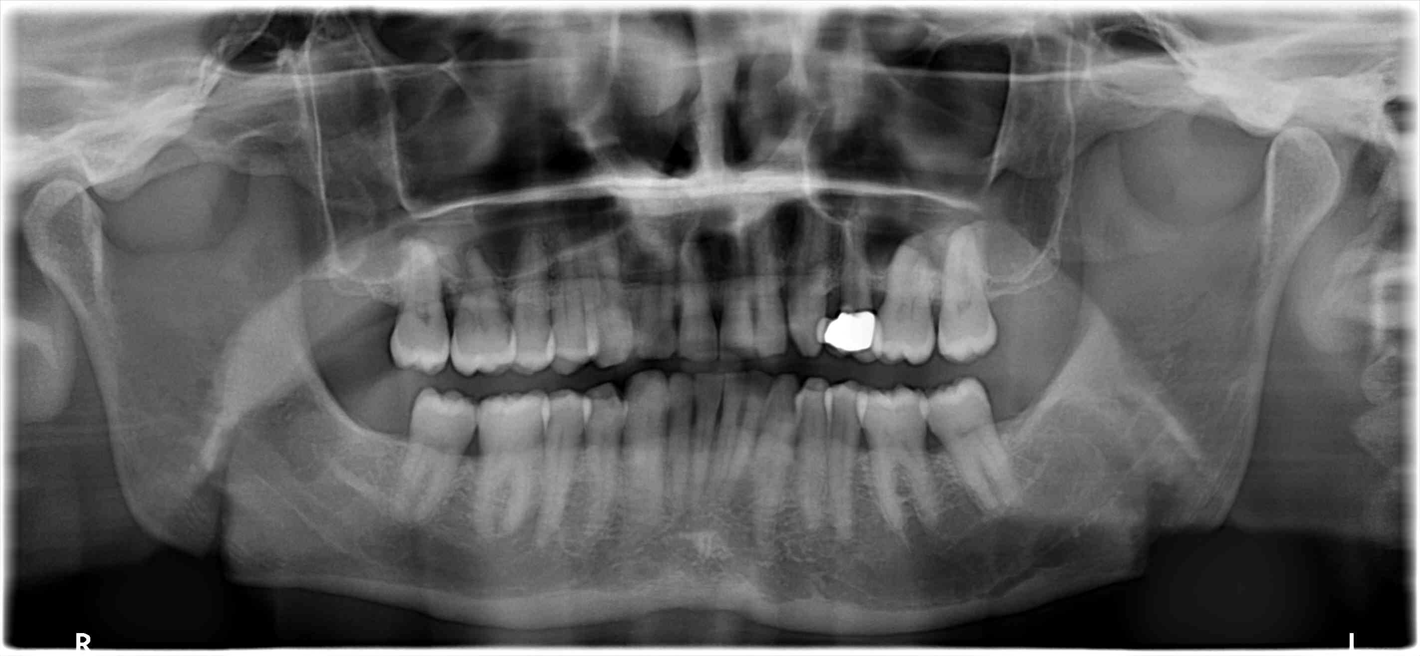 un patient 46 ans de longue date vient me voir pour la casse distale du bridge cantilever maxi gauche, fait sur dent vivante il y a 16 ans, réalisé après de l'ortho, la 14 a été extraite, avec un espace dispo entre 15-13 réduit.