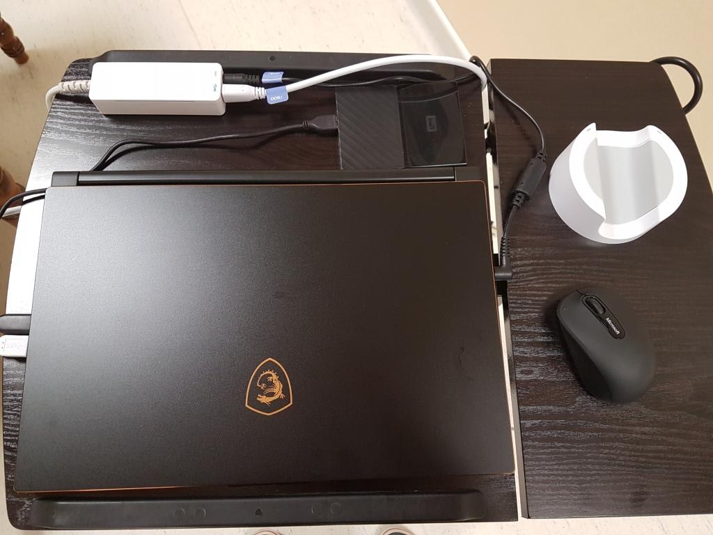 Moi, j'ai mis le pc dans un tiroir relié à un écran externe par un cable HDMI qui passe sous les meubles, un ecran + souris sans fil, parametrage du pc pour fonctionner capot fermé et roule ma poule, y'a rien qui dépasse.
