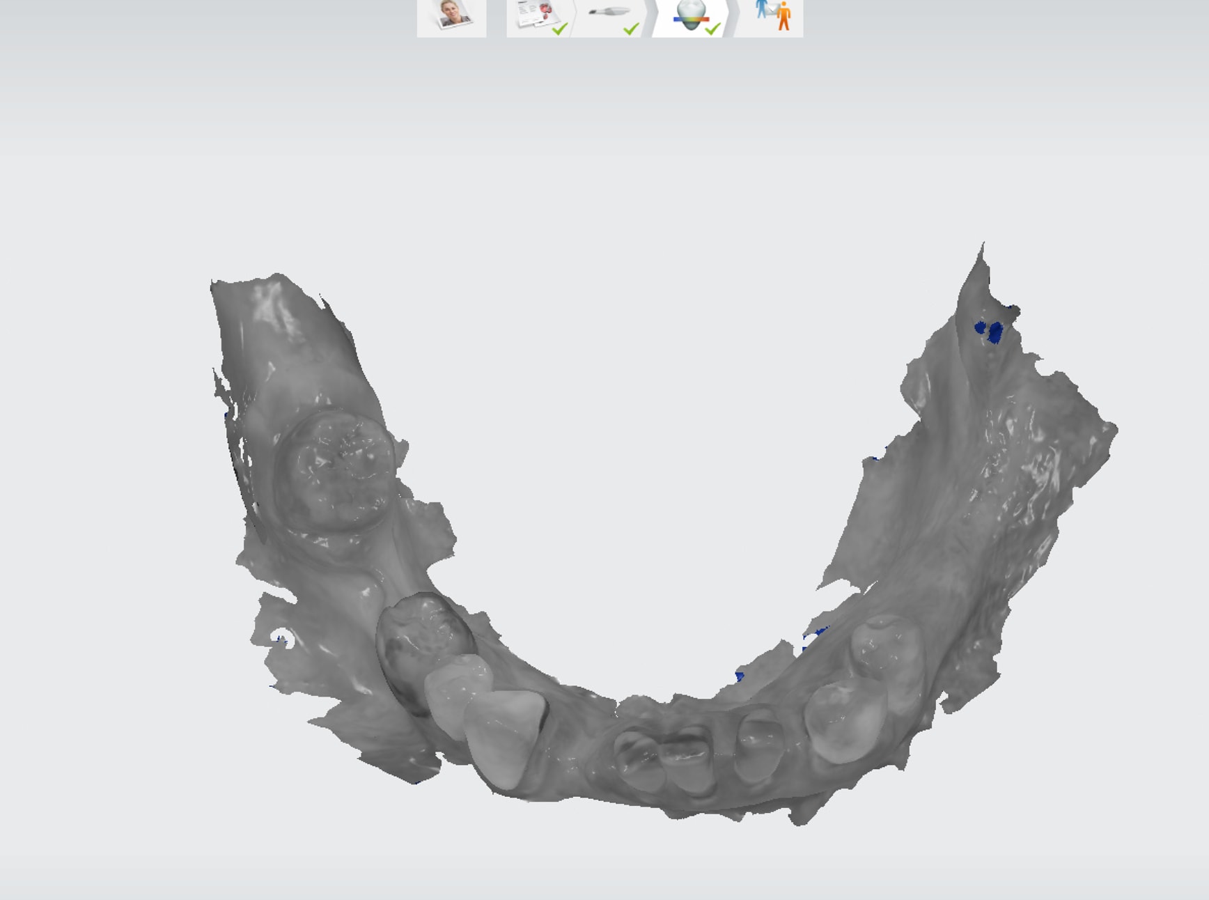 Faut pas etre complètement occlusal pour la mandibule. Intercaler la camera pour éviter que la langue t'emmerde. si tu es pile occlusal tu vas la scanner et ca pose problème. Sinon écarteur genre linguafix mais c'est pas pratique pour scanner les faces linguales.